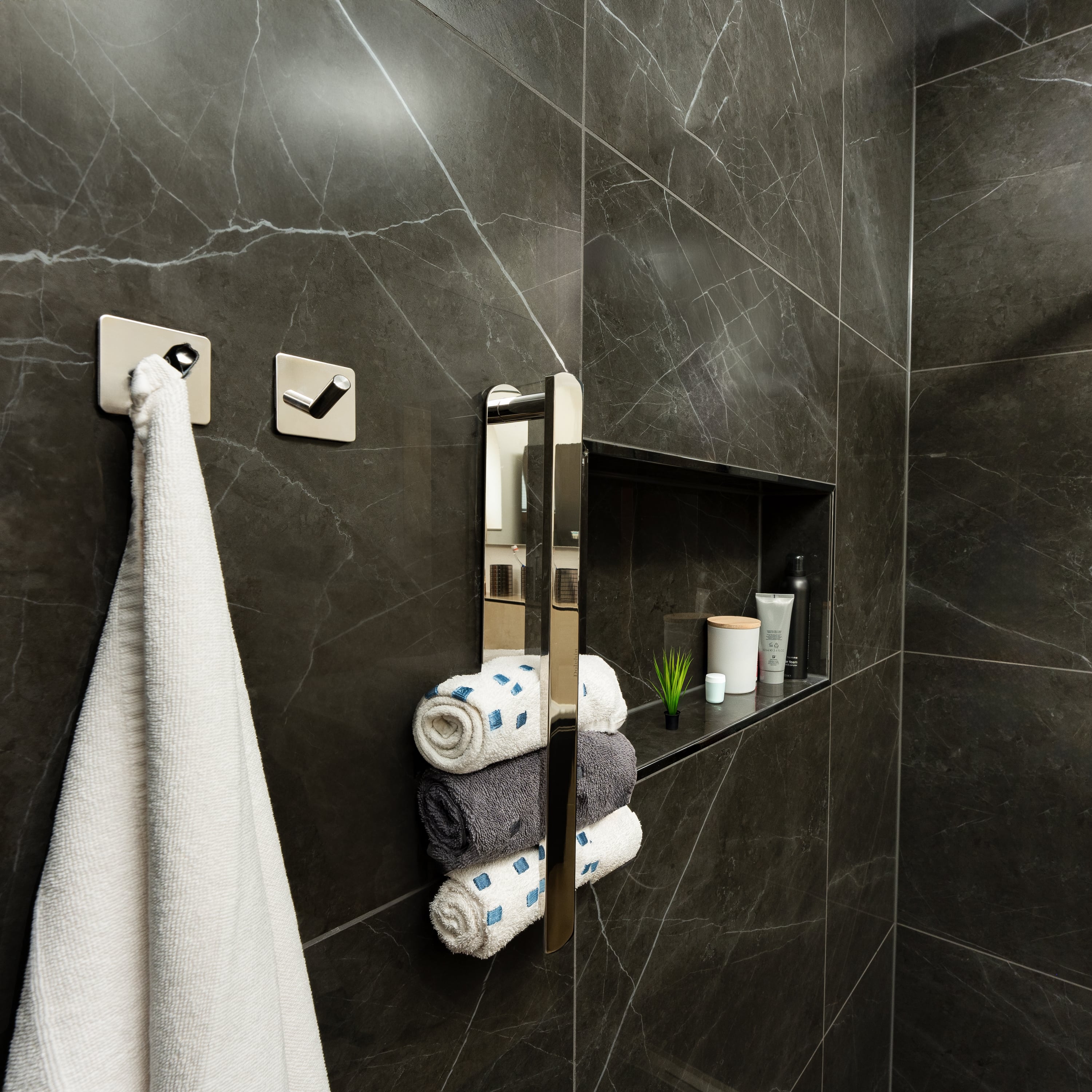 Unsere vielseitigen Handtuchhalter sind die perfekte Ergänzung für dein Zuhause. Mit einer Auswahl von kleinen Haken für einzelne Handtücher bis Gästehandtuchhalter bis 41 cm sind sie ideal für verschiedene Räume und Anwendungen geeignet. Dank des bereits angebrachten 3M Klebestreifen sind diese Handtuchhalter zum Kleben einfach zu montieren und eignen sich bestens für Waschtische, Waschbecken oder geflieste Wände. Solange die Oberflächen eben und glatt sind, kleben die Handtuch-Halterungen bombenfest. Egal ob für kleine oder große Handtücher, die Dolvhin Handtuchhalter erfüllen alle Anforderungen für eine stilvolle und funktionale Aufbewahrung. Hergestellt aus hochwertigem SUS304 Edelstahl, fügen sich die Badetuchhalter nahtlos in moderne Badezimmer ein und verleihen dem Raum eine raffinierte Note. Die Edelstahl Handtuchhalter überzeugen durch ihre widerstandsfähige Bauweise, die mühelos den Herausforderungen von feuchten Handtüchern und täglichem Gebrauch standhält. Diese Eigenschaften gewährleisten nicht nur eine beeindruckende Langlebigkeit, sondern auch Zuverlässigkeit in den häufig feuchten Bedingungen deines Badezimmers. Zudem zeigt sich die Pflege unserer Handtuchstangen und Badezimmer Klebhaken spielend einfach.
