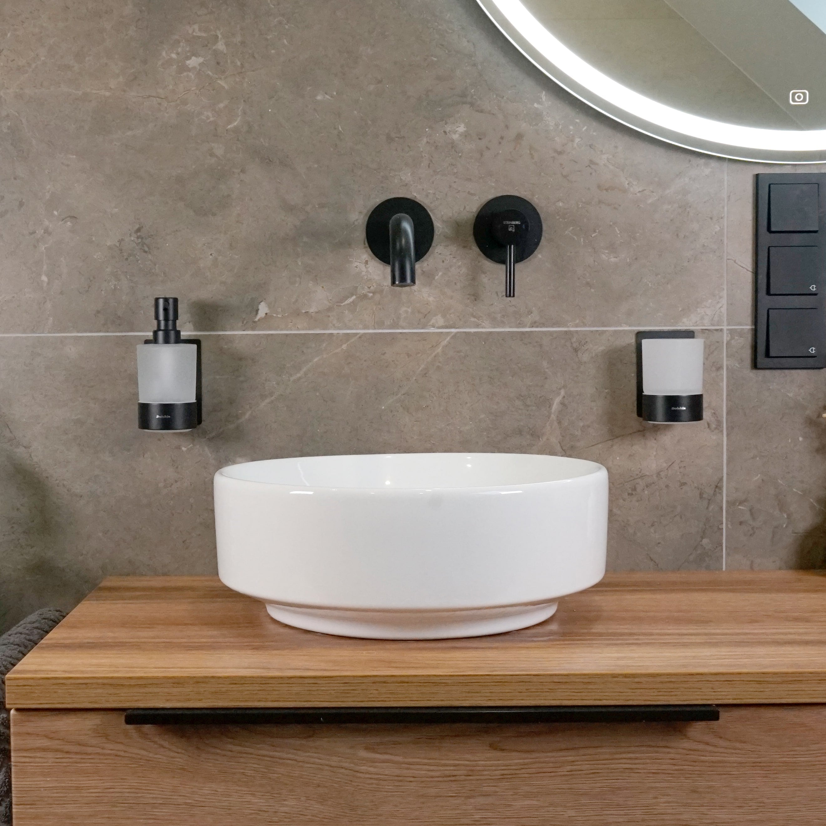Unsere Handseifenspender und zahnputzbecherhalter zur Wandbefestigung setzen nicht nur ein ästhetisches Highlight in deinem Badezimmer, sondern bieten auch eine Reihe überzeugender Vorteile. Gefertigt aus erstklassigem SUS304 Edelstahl und veredelt mit einer widerstandsfähigen Oberflächenbeschaffenheit, zeichnen sich diese Accessoires durch ihr einzigartiges und edles Design aus. Die praktische Wandhalterung ermöglicht eine leichte Reinigung, wodurch du nicht nur Zeit sparst sondern dein Bad stets aufgeräumter strahlen lässt. Dank der platzsparenden Wandmontage schaffen unsere Produkte nicht nur eine aufgeräumte Optik, sondern maximieren auch den verfügbaren Raum im Badezimmer. Keine überfüllten Schränke und Waschbecken mehr. Die Flüssigseite kann einfach eingefüllt werden indem du den Edelstahl Pumpspender vom Glas abdrehst, einfüllst und wieder verschließt. Die Verwendung von Milchglas in Verbindung mit Edelstahl, garantiert eine stabile und dauerhafte Aufbewahrung für deine Seife und Zahnbürsten.