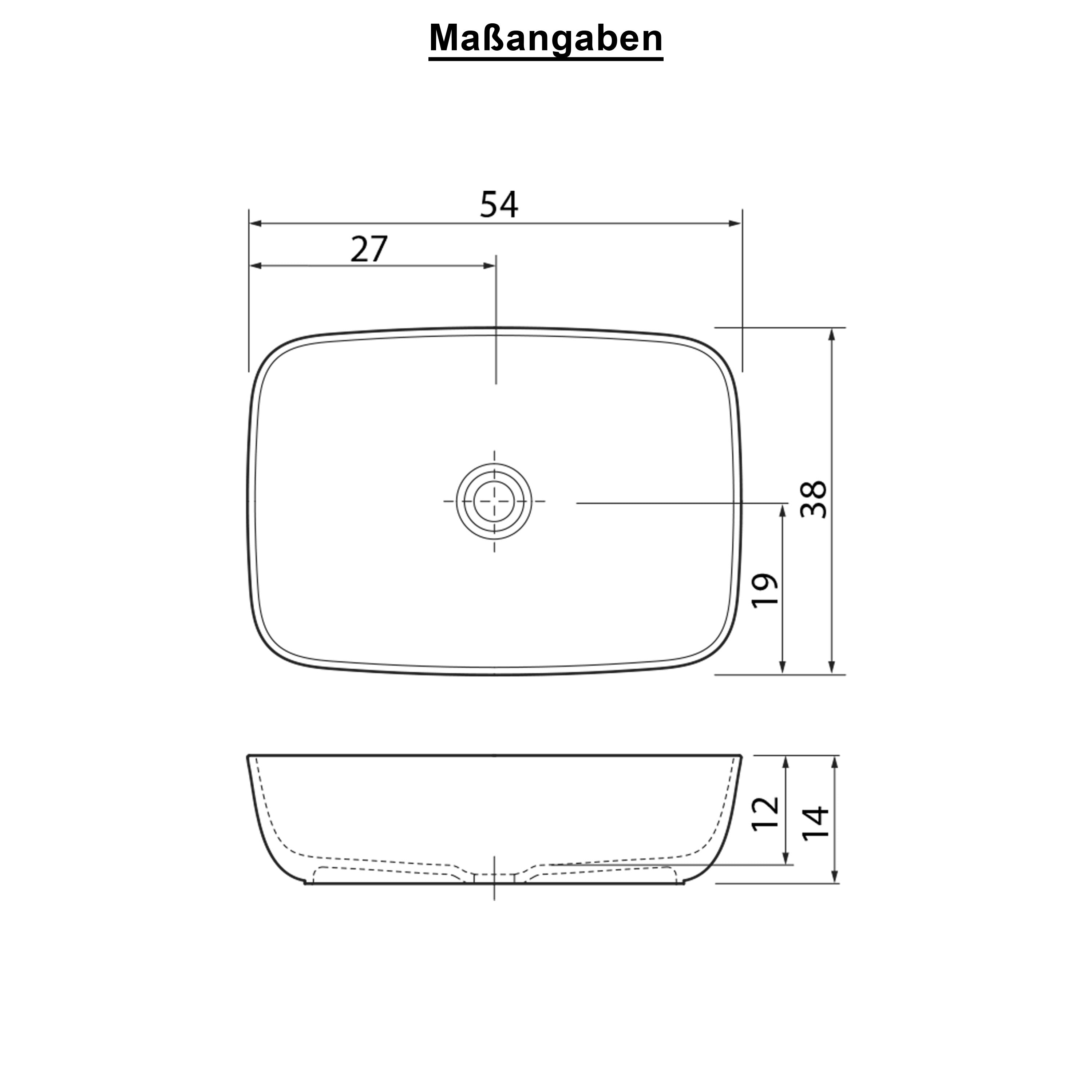 Dolvhin® Aufsatzwaschbecken "Eluna" | Solid Surface Mineralguss | Rechteckig | Weiß Matt | 54x38x14 cm