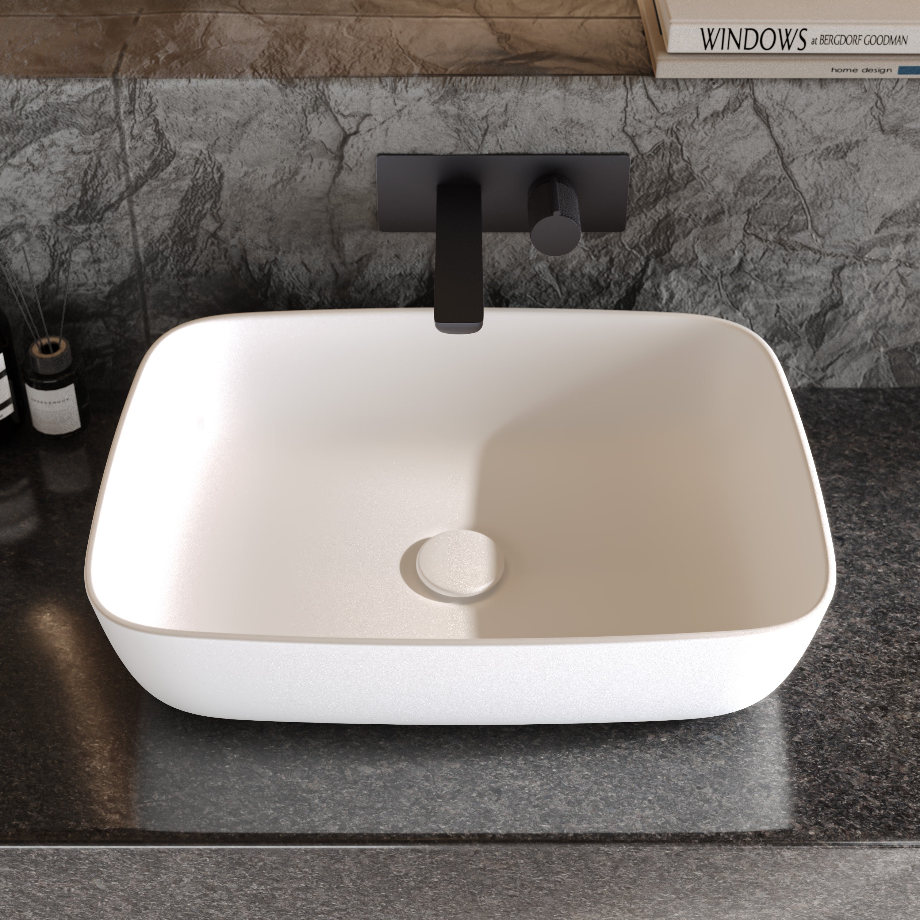 - Leichtgewicht: Trotz seiner massiven Anmutung ist dieses Mineralguss Aufsatzwaschbecken spürbar leichter als klassische Mineralguss-Waschbecken und bietet gleichzeitig eine hohe Stabilität für die sichere Montage.