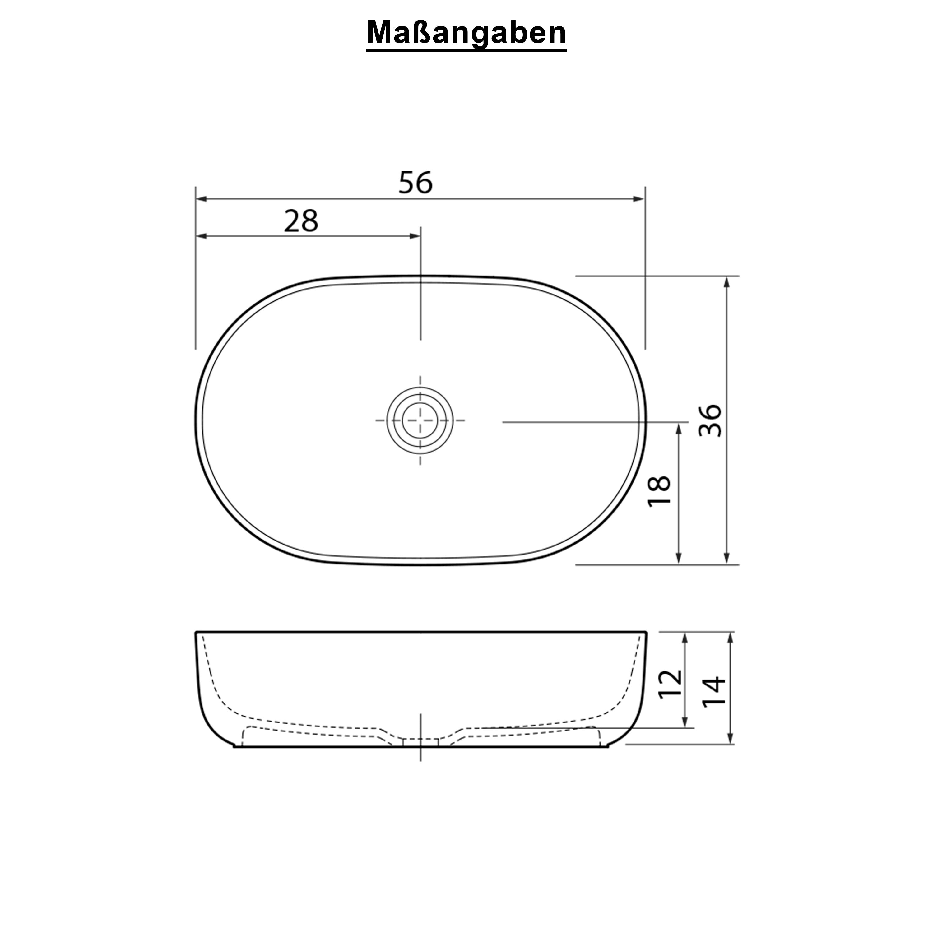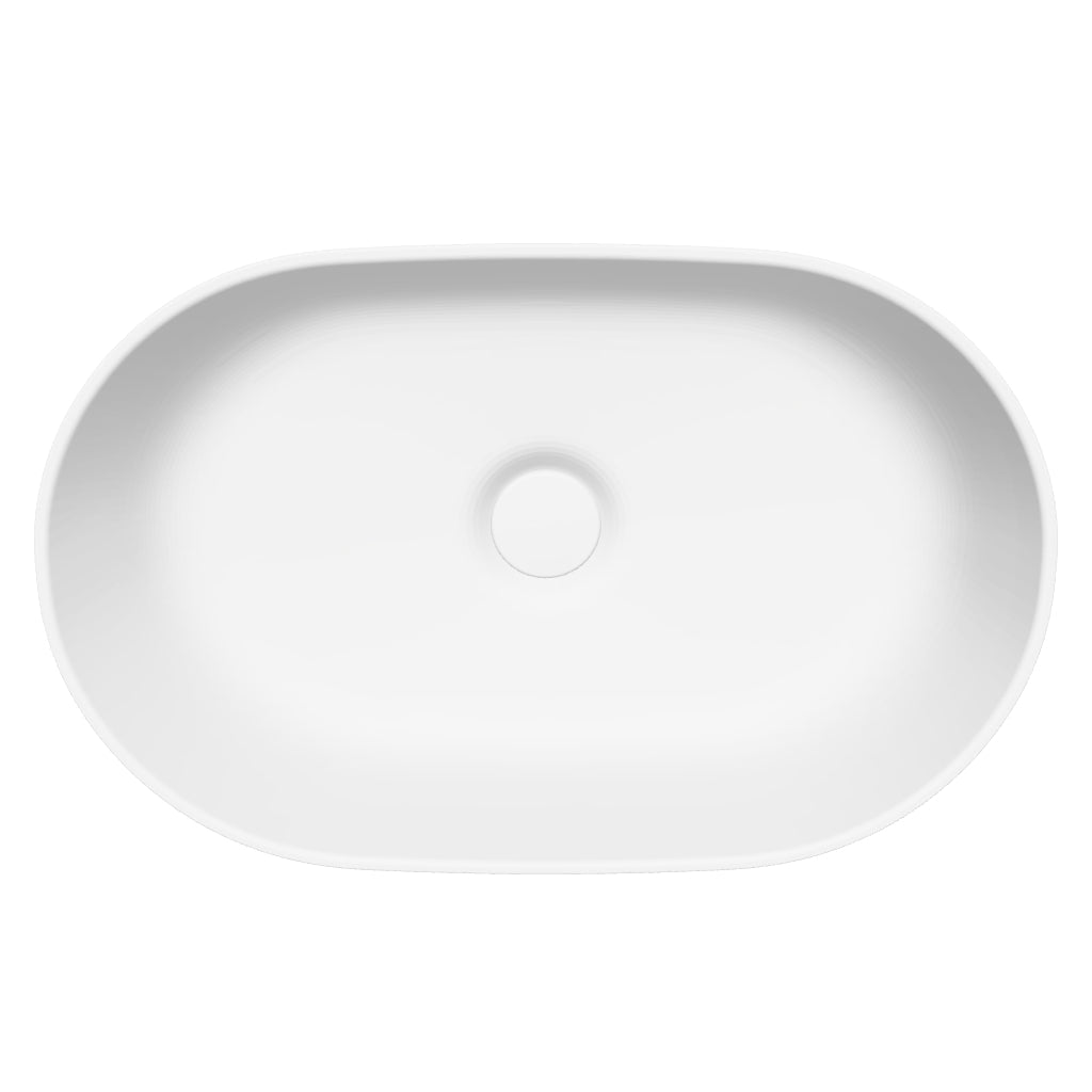 Dolvhin® Aufsatzwaschbecken "Luva" | Solid Surface Mineralguss | Oval | Weiß Matt | 56x36x14 cm