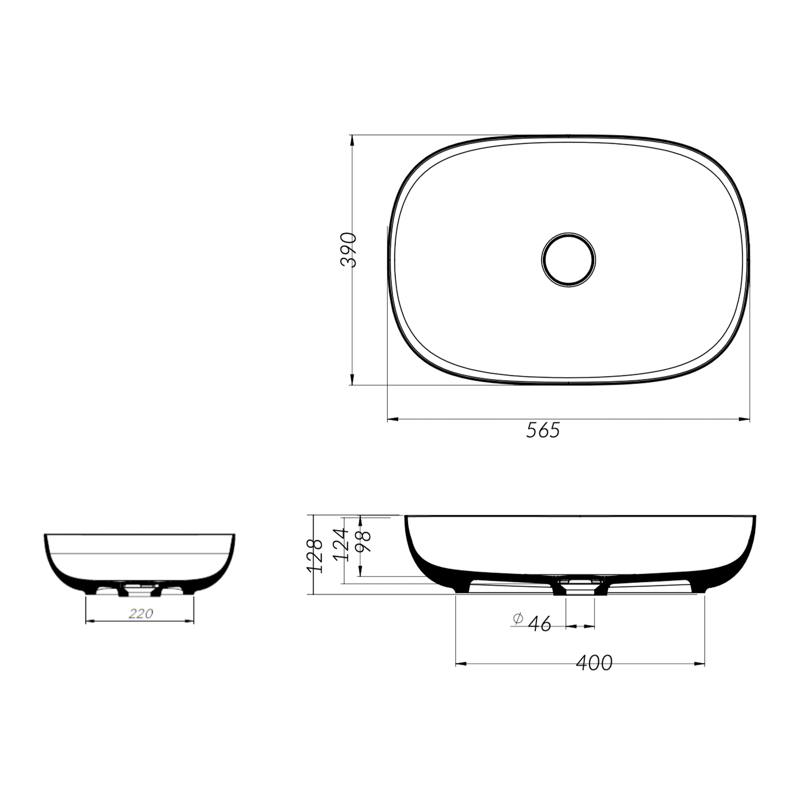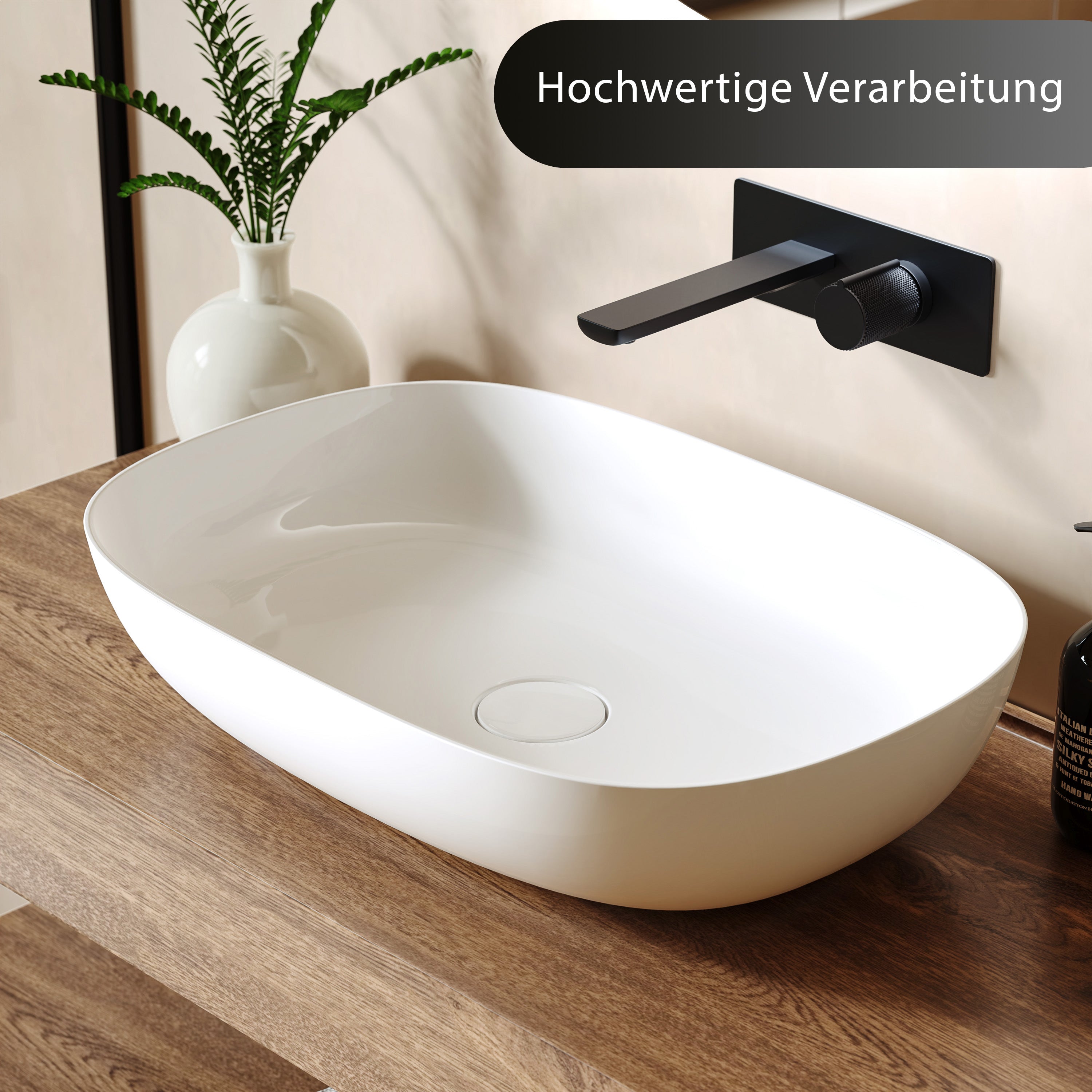 Dolvhin® Aufsatzwaschbecken aus Mineralguss "Malé" | Weich eckige Form | 56,5x39x12,8 cm