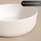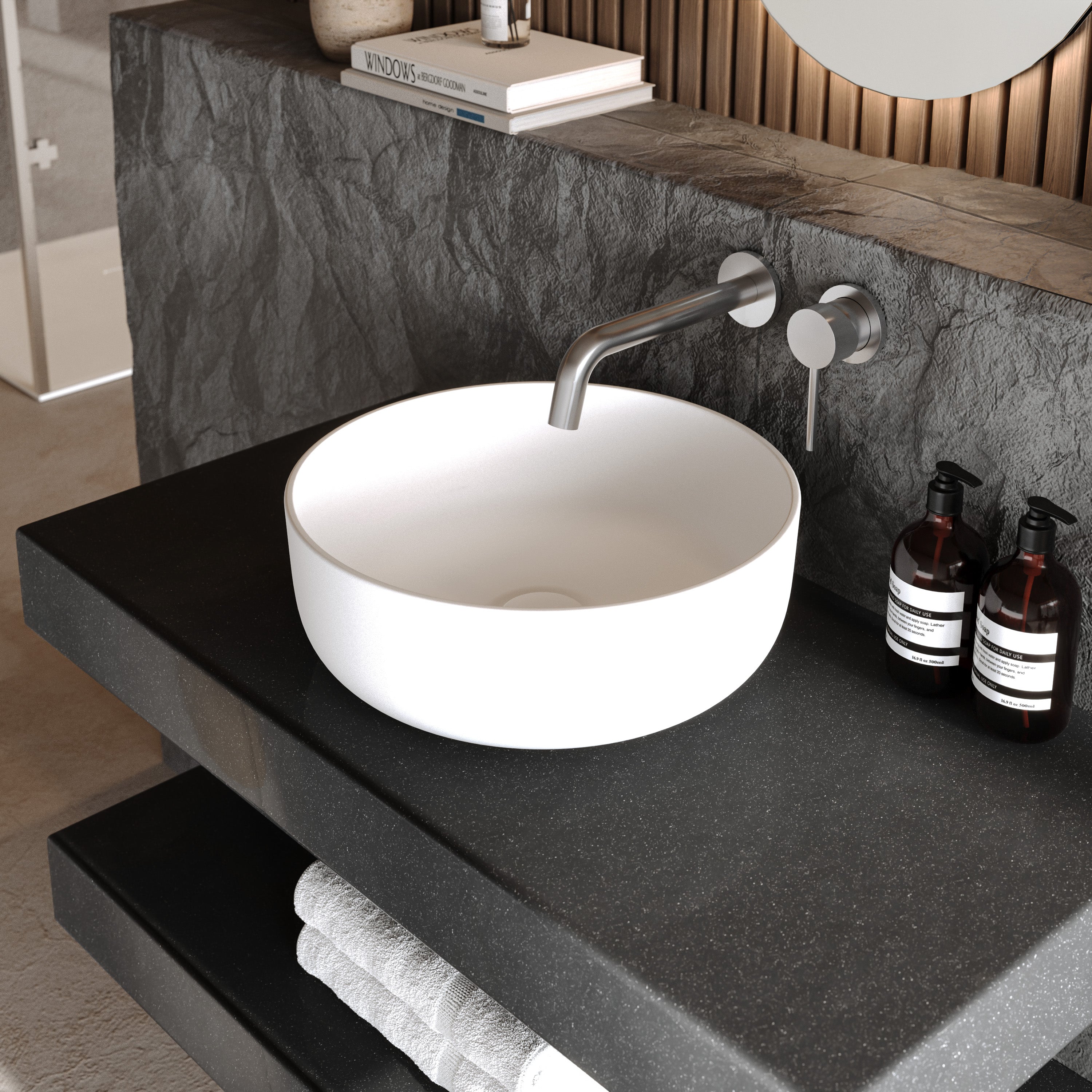 Jedes Aufsatzwaschbecken wird in präziser Handarbeit endgefertigt, um höchste Präzision an jedem Detail sicherzustellen. Nicht porös, kratzresistent und hitzebeständig – das massive Mineralwerkstoff bleibt auch bei täglicher Beanspruchung makellos und formstabil.