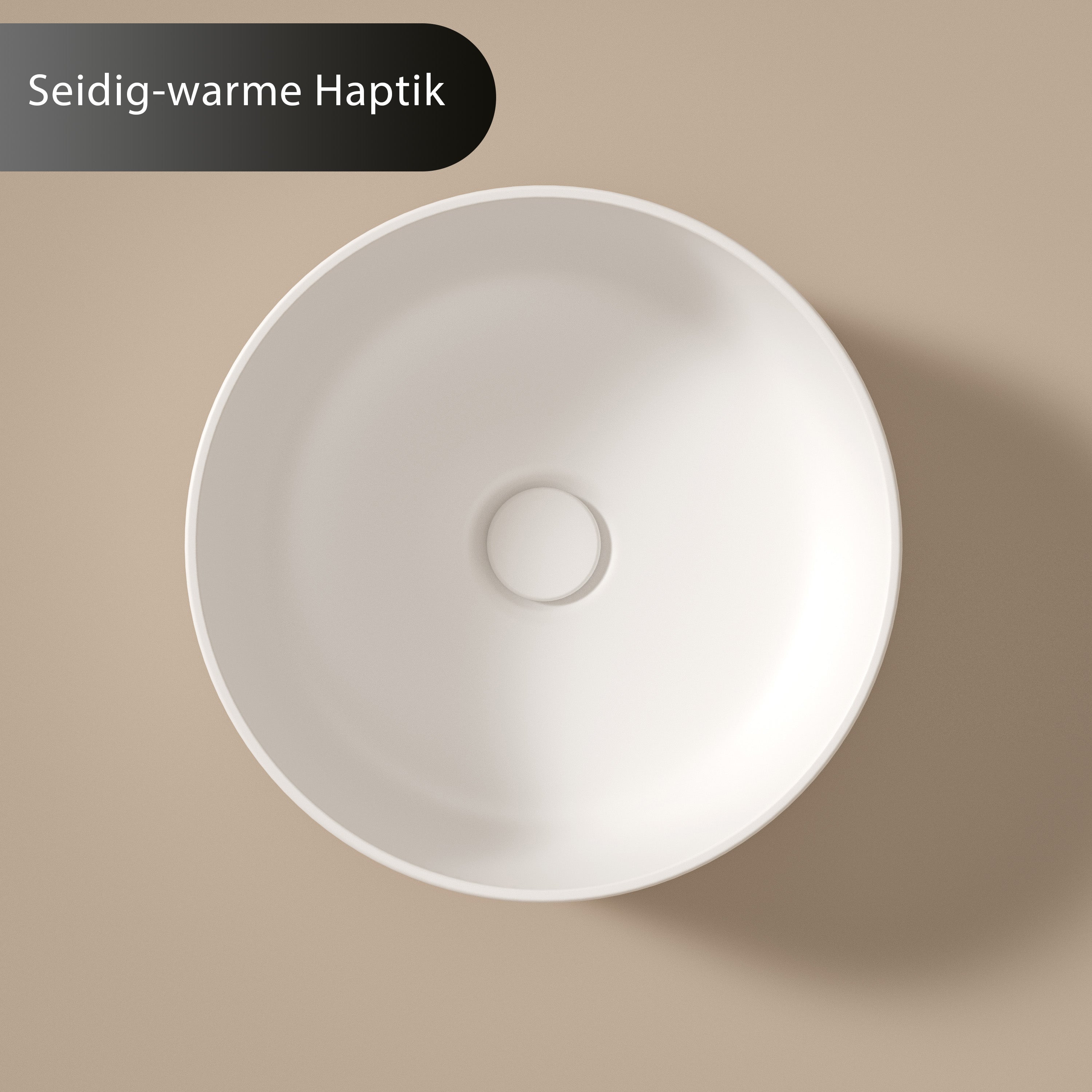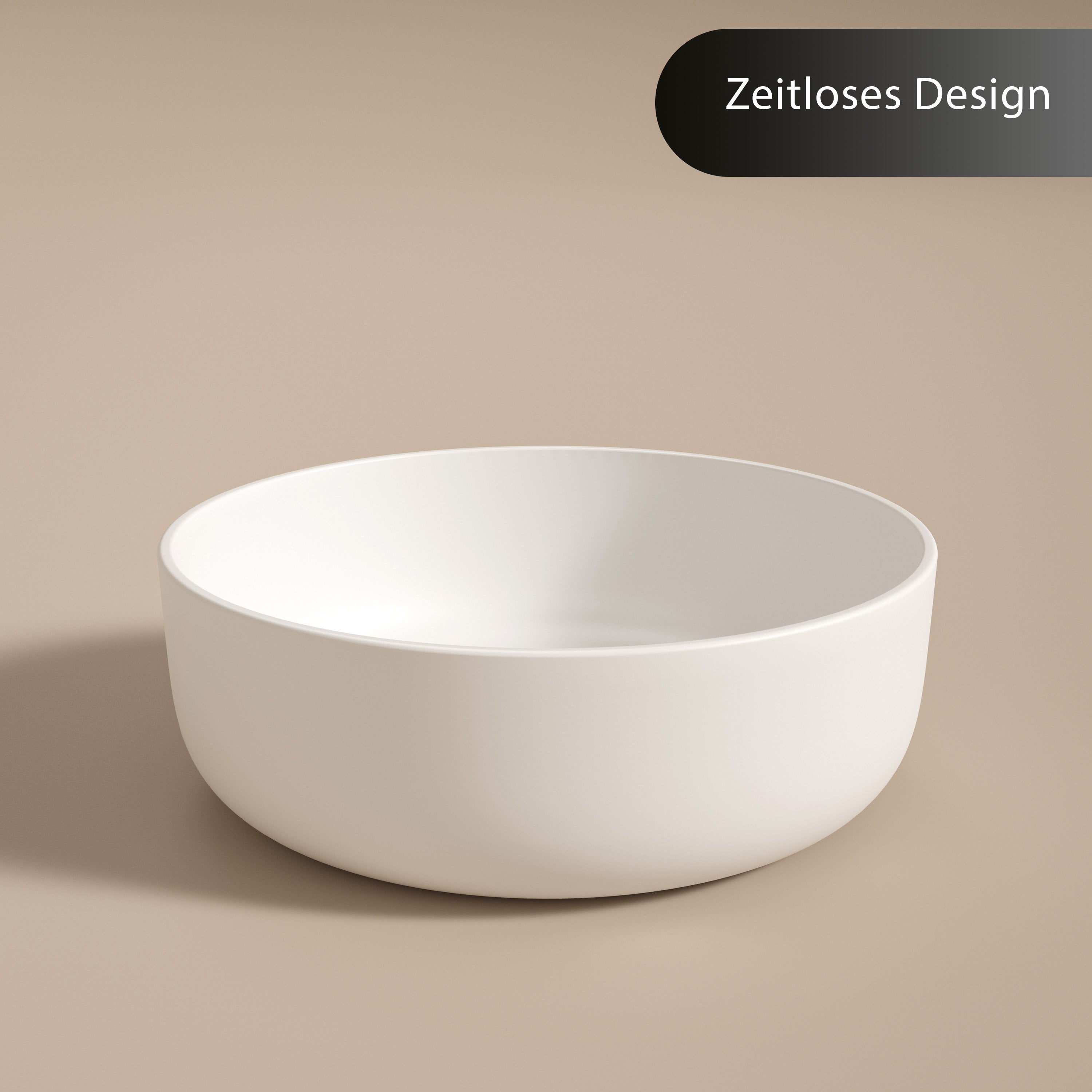 Dolvhin® Aufsatzwaschbecken "Norea" | Solid Surface Mineralguss | Rund | Weiß Matt | Ø41x14 cm