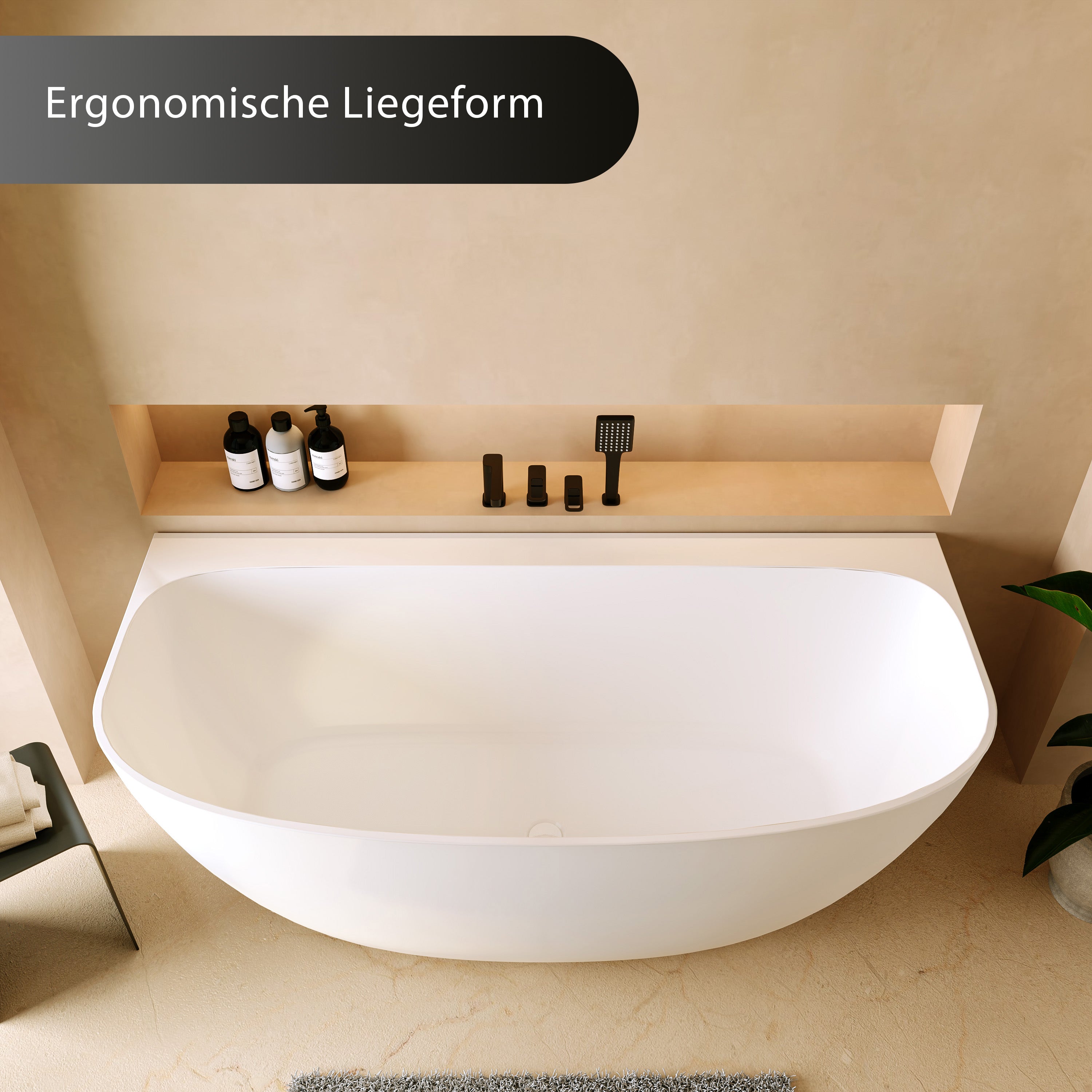 Formstabil: Die Mineralguss-Badewanne behält auch nach längerem Gebrauch ihre ursprüngliche Form bei. Sie ist weniger anfällig für Verformungen oder Risse im Vergleich zu anderen Materialien und hebt so ihre Langlebigkeit und Beständigkeit hervor.