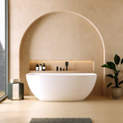 Dolvhin® Halb freistehende Badewanne "Tahaa" aus Mineralguss | Oval | 160x75x57 cm