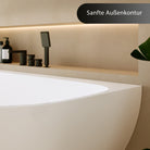 Die weich abgerundete Frontlinie verleihen der Vorwand-Badewanne eine moderne Leichtigkeit. Sie fügt sich harmonisch in die Wand ein und wirkt dennoch wie ein elegantes Designobjekt. Ein Statement zeitloser Badarchitektur – ausbalanciert, formschön und aus jedem Blickwinkel stilvoll.