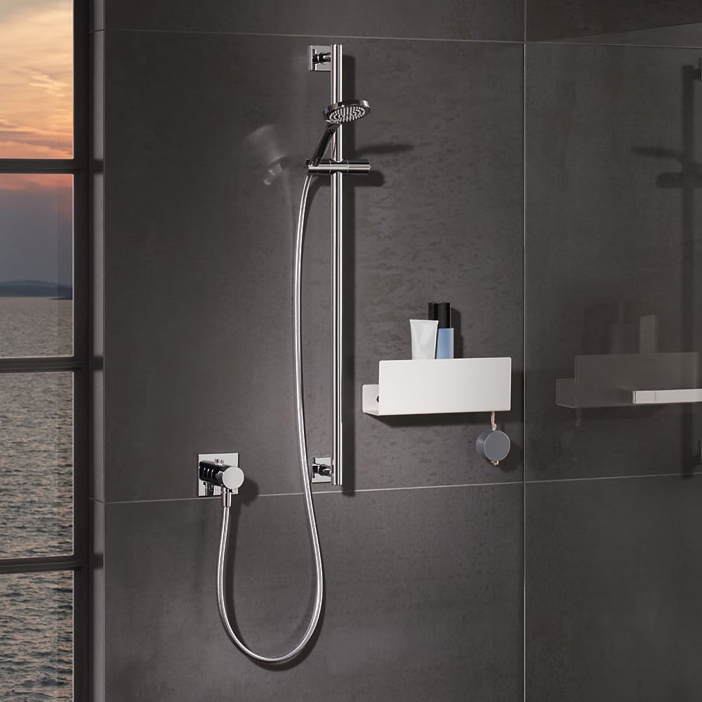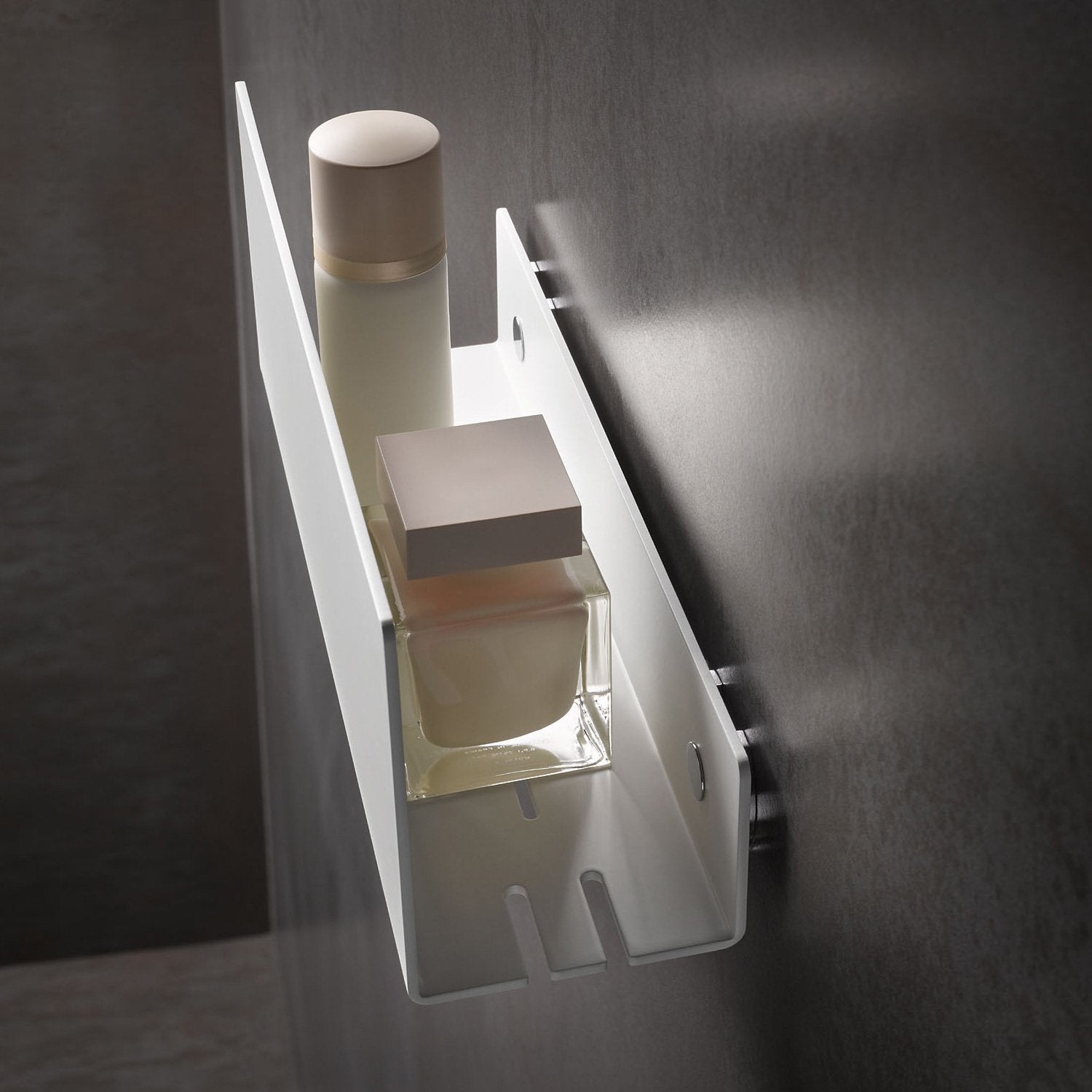 Reduziertes, funktionales Design trifft auf hochwertige Verarbeitung. Die Duschablage fügt sich dezent und stilvoll in moderne Bäder ein.