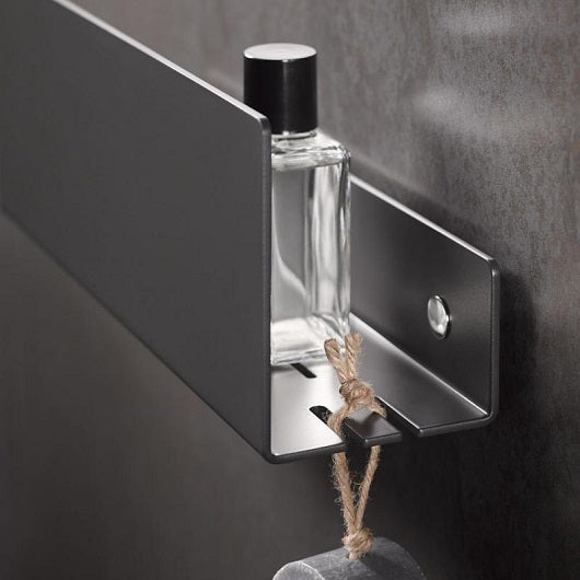 Gefertigt aus hochwertigem Aluminium in matter Ausführung fügt sich das Badregal nahtlos in moderne Badezimmer ein. Die integrierten Ablaufschlitze sorgen dafür, dass Wasser effizient abläuft.