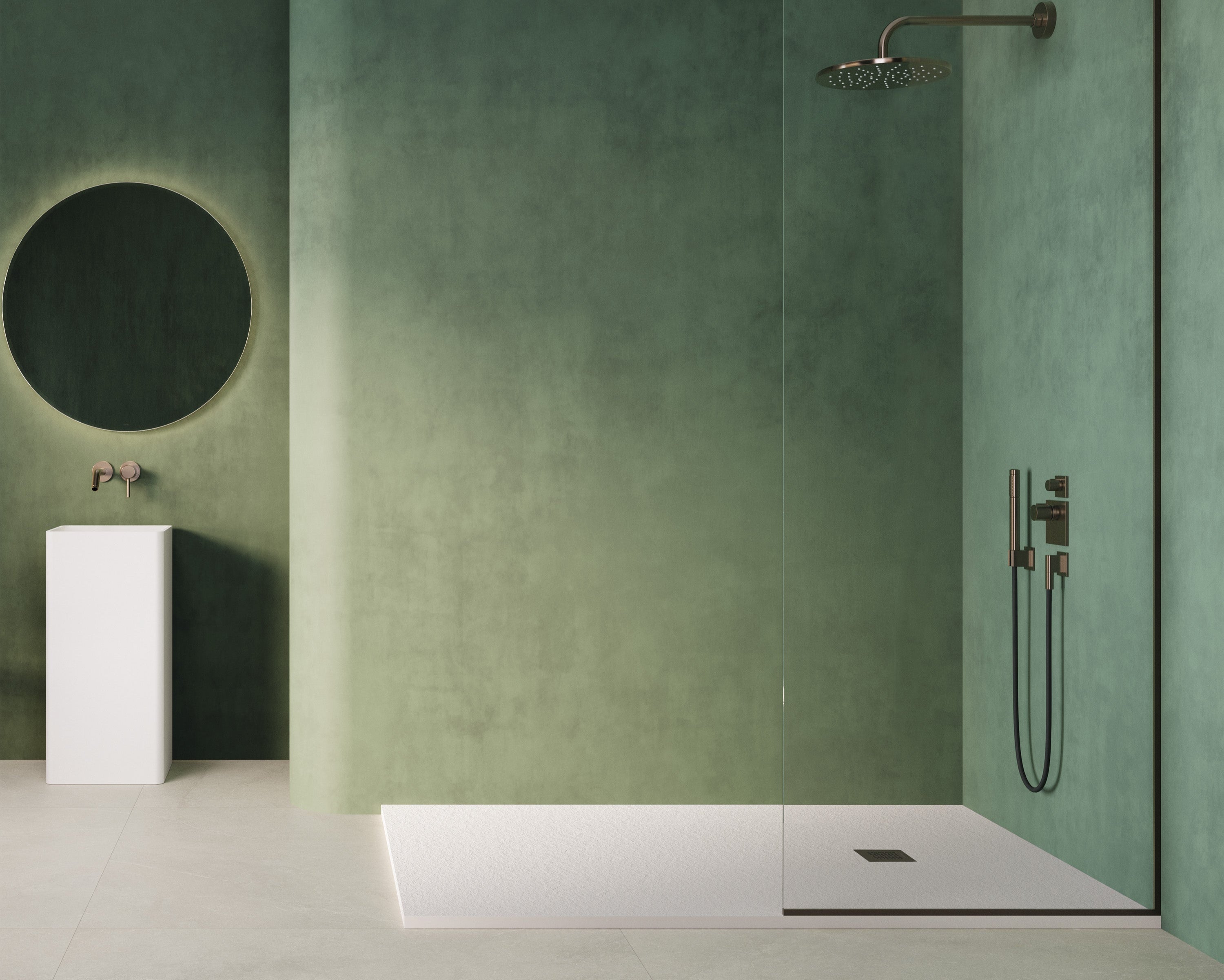 Die Oberfläche nimmt Wärme schnell auf und gibt sie gleichmäßig wieder ab. So bleibt die Duschfläche angenehm temperiert – ohne den kalten Schock herkömmlicher Materialien. Jeder Schritt fühlt sich spürbar sanft und natürlich an.