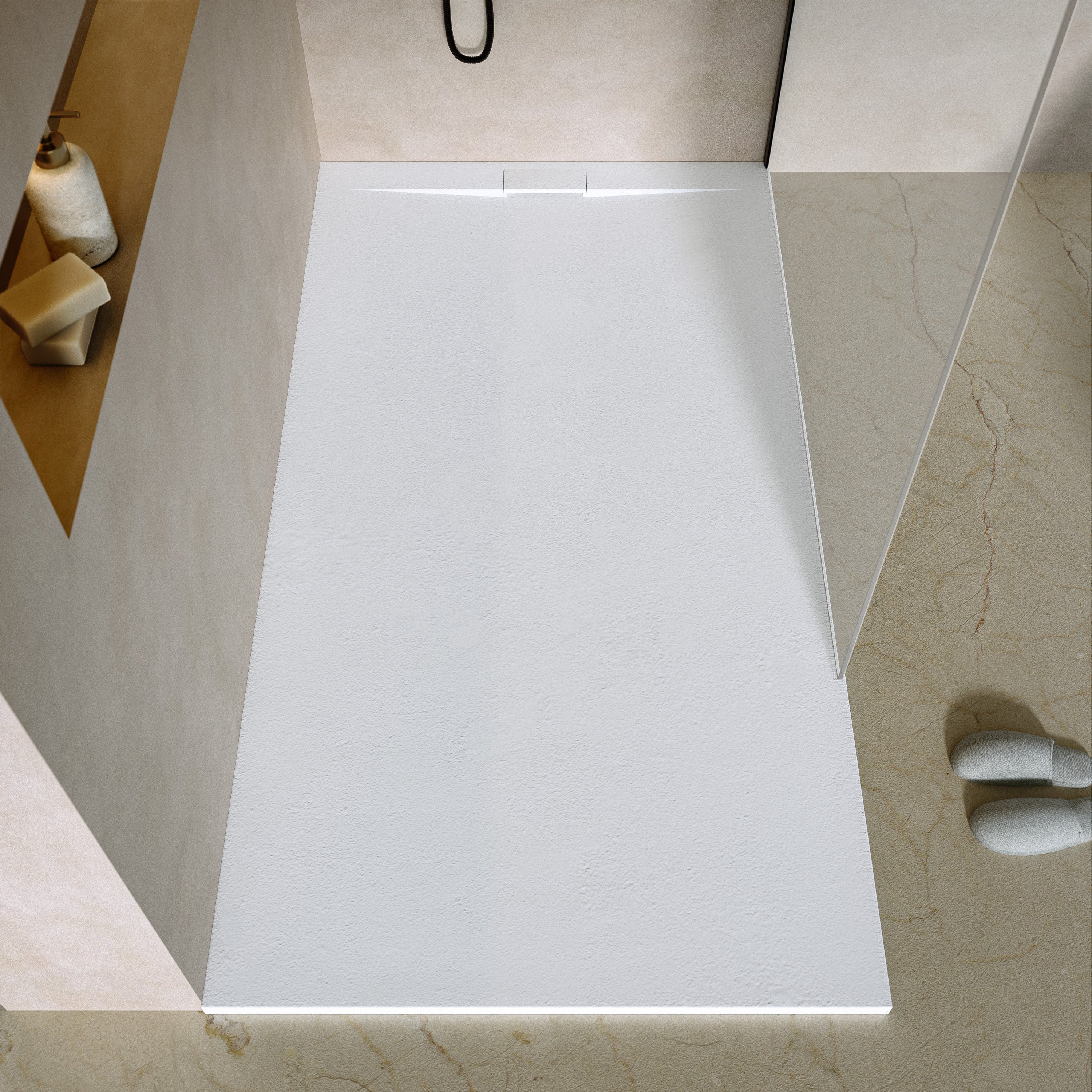 Elegant, zeitlos und mit natürlicher Haptik. Die dezente Steinstruktur der Wanne verleiht deinem Bad ein edles Design und sorgt gleichzeitig für sicheren Halt beim Duschen.