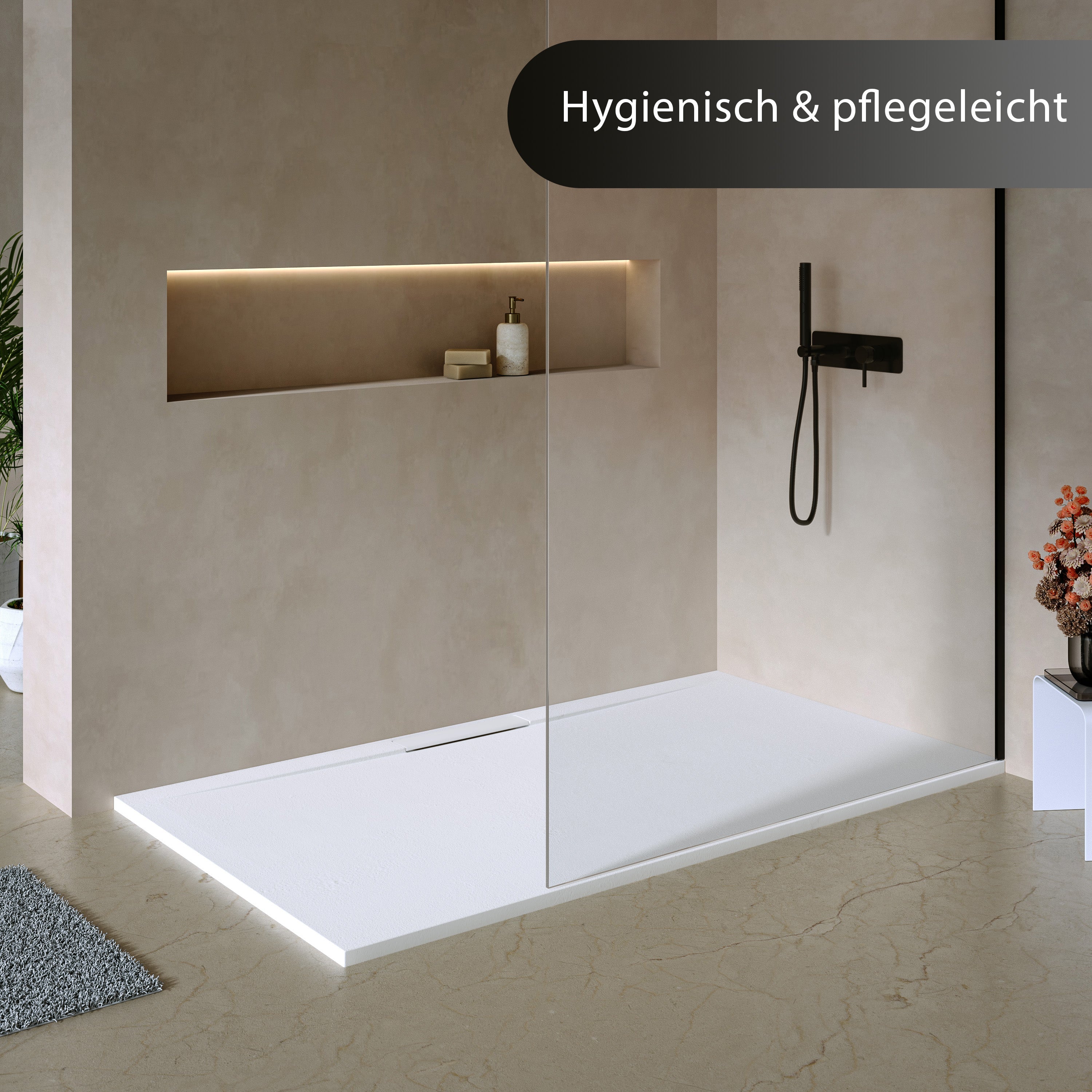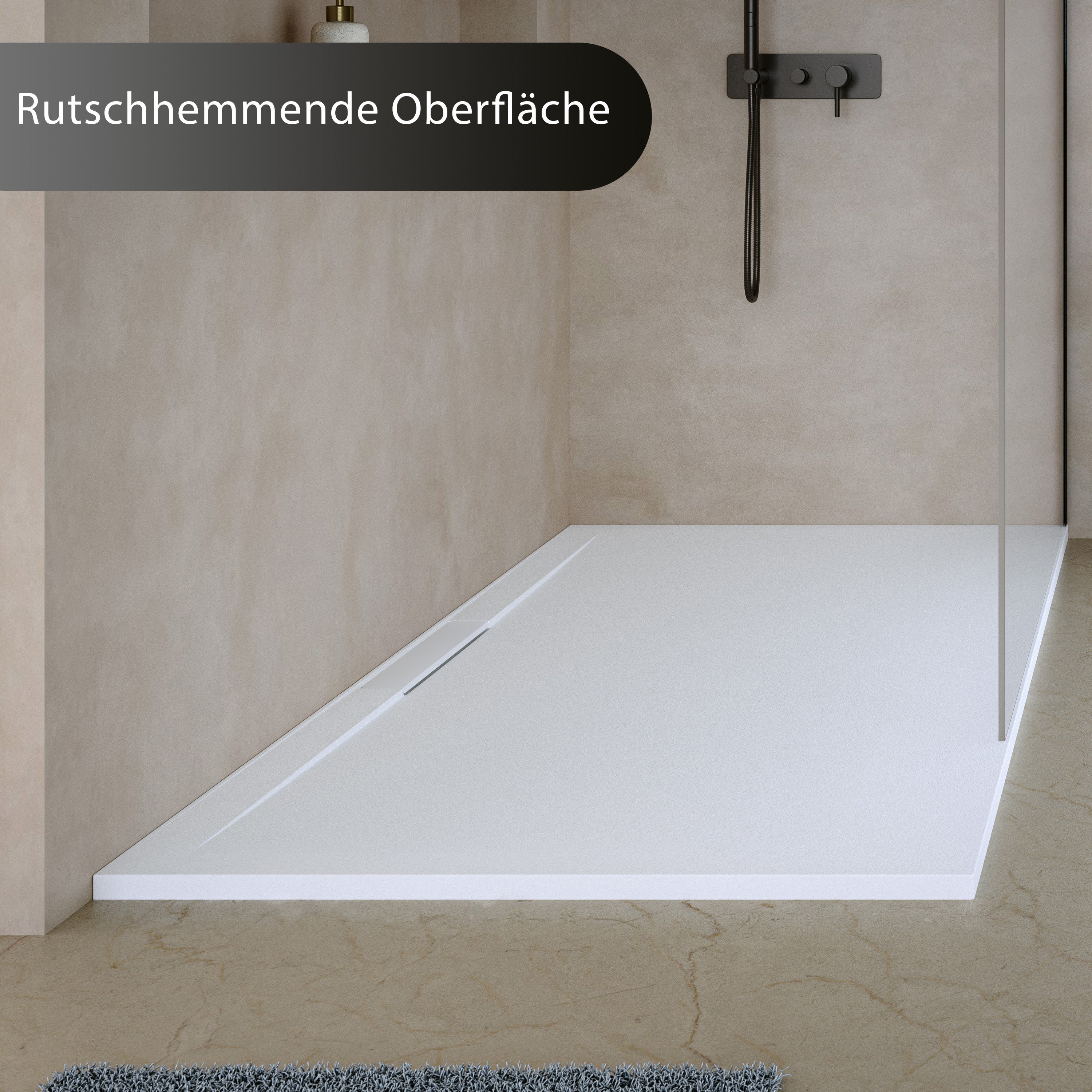 Dolvhin® Duschwanne aus Mineralguss "Ardea Side" | Rutschhemmende Naturstein-Optik | Seitlicher Kantenablauf