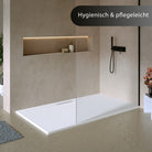 - Pflegeleicht: Die fugenlose Oberfläche der flachen Duschtasse erleichtert die Reinigung deutlich. Schmutz und Kalk haften kaum, sodass die Mineralguss-Duschwanne dauerhaft sauber und gepflegt wirkt.