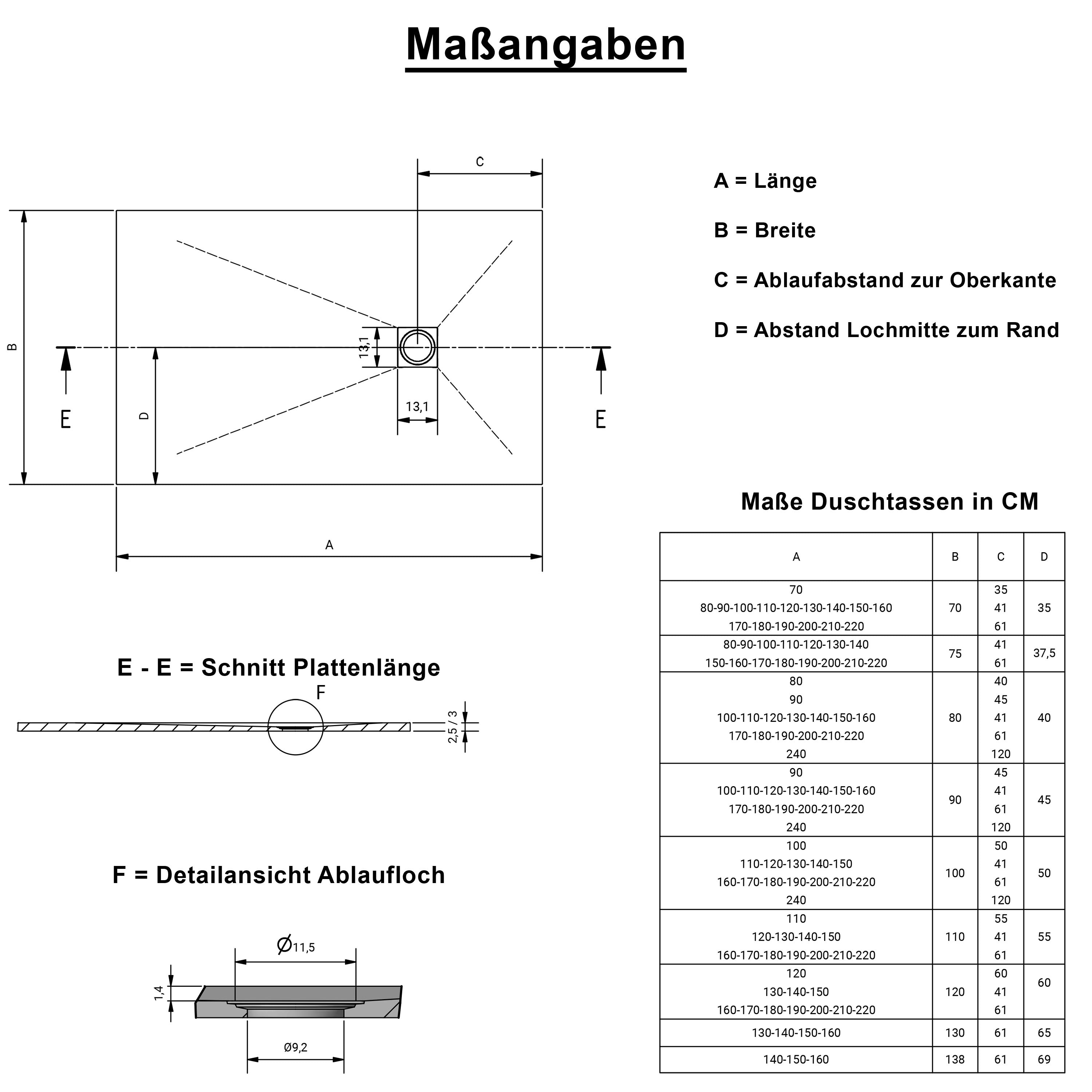 Die „Caliza“ ist in verschiedenen Standardgrößen erhältlich. Zusätzlich bieten wir Maßanfertigungen nach Wunsch an (Lieferzeit ca. 2–3 Wochen).