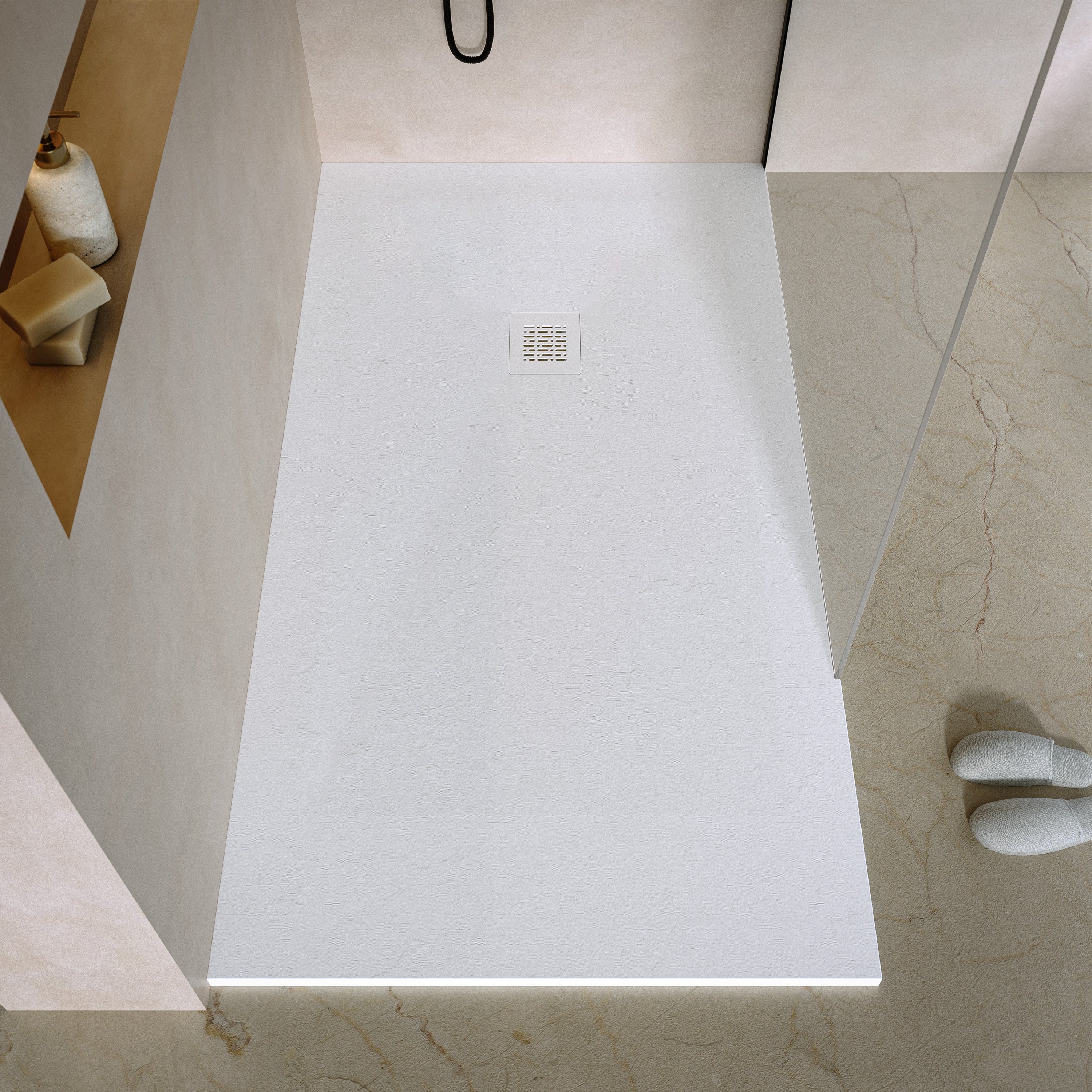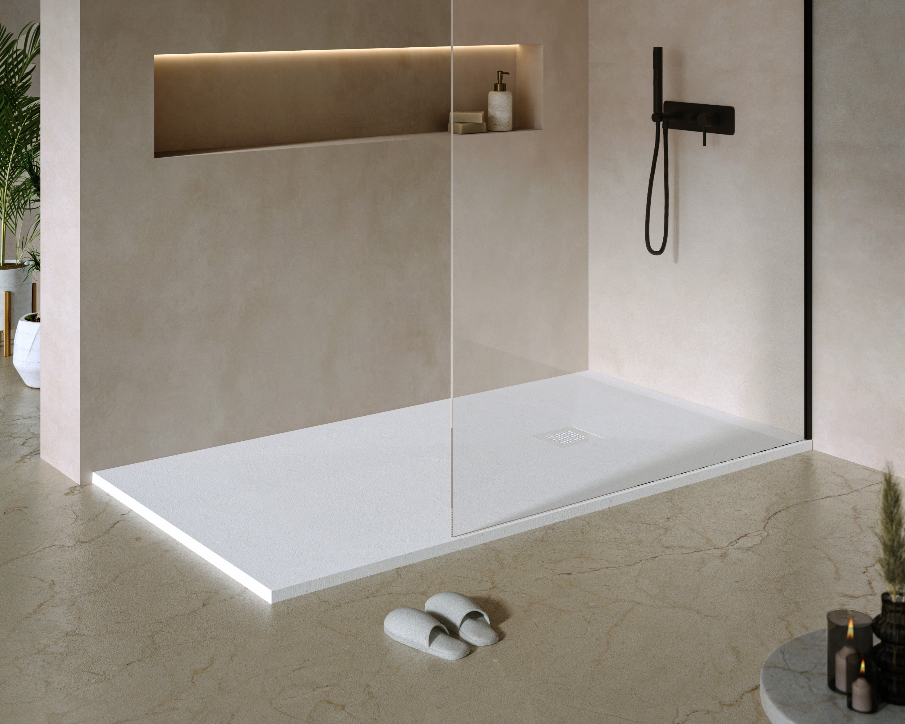Elegant, zeitlos und mit natürlicher Haptik. Die dezente Steinstruktur der Wanne verleiht deinem Bad ein edles Design und sorgt gleichzeitig für sicheren Halt beim Duschen.