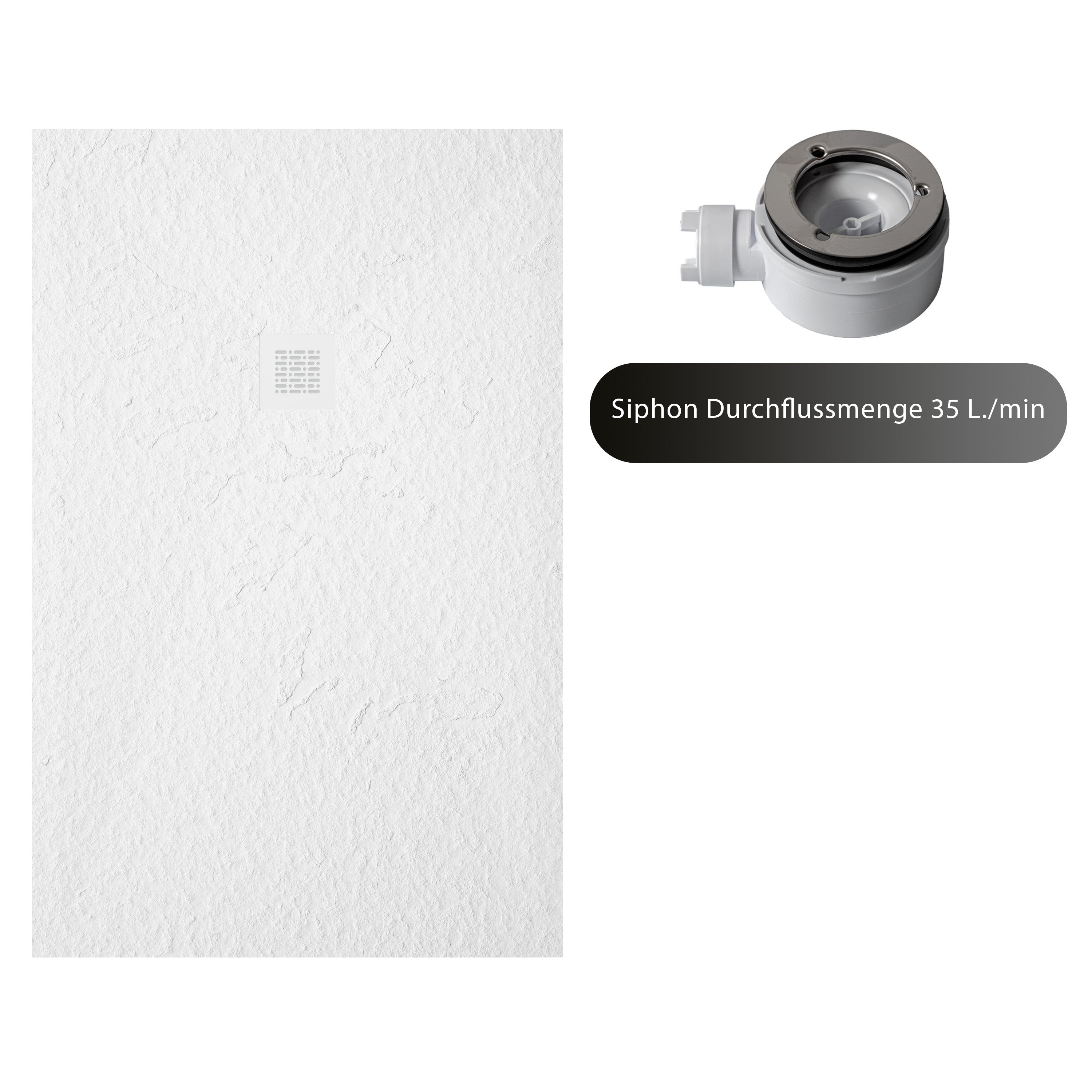 Dolvhin® Duschwanne aus Mineralguss "Caliza" | Rutschfeste Schieferoptik | Mittiger Ablauf