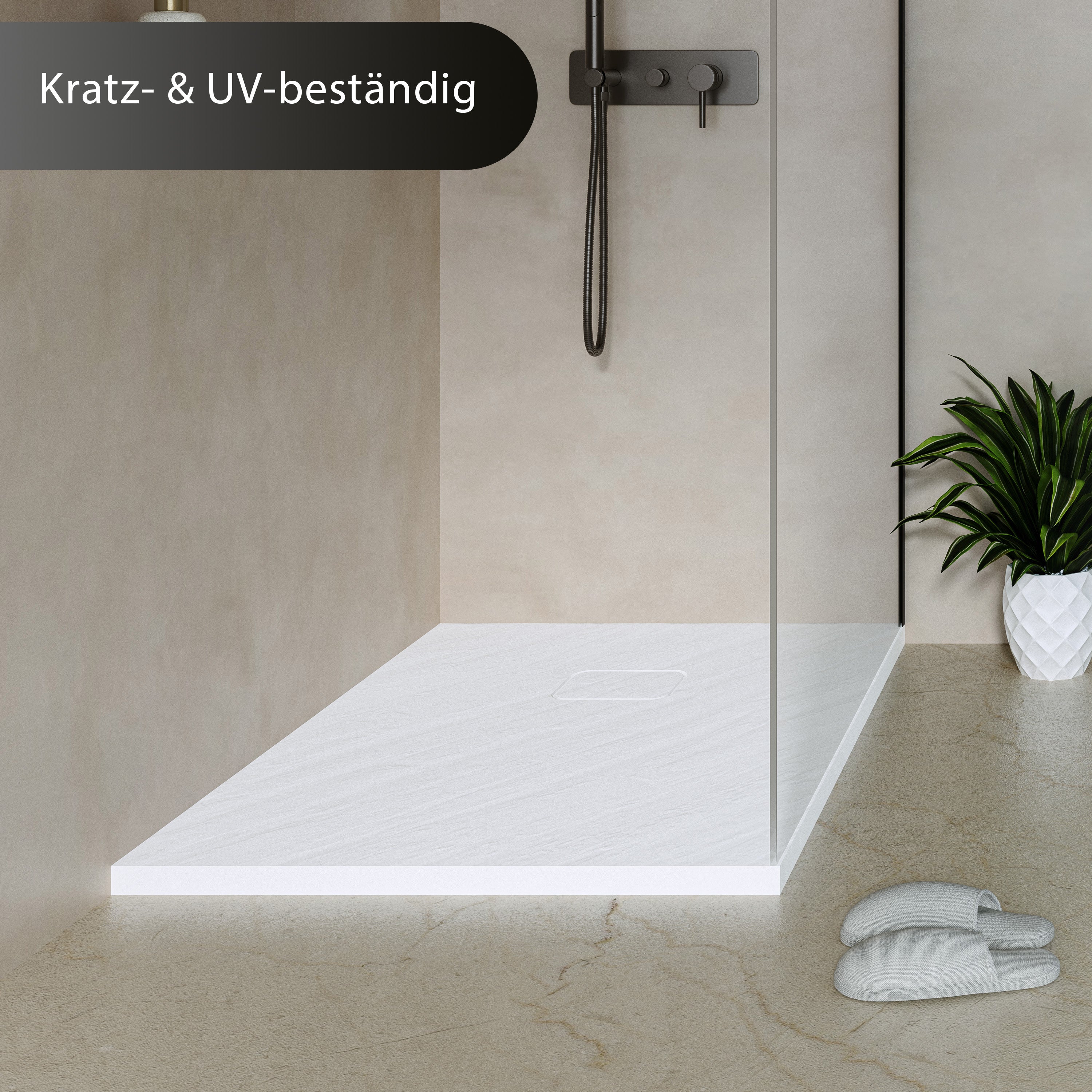 Wärme & Komfort: Die hochwertige Materialstruktur des Duschbecken speichert Wärme länger und sorgt so für eine angenehm temperierte Oberfläche – für spürbar mehr Duschkomfort.