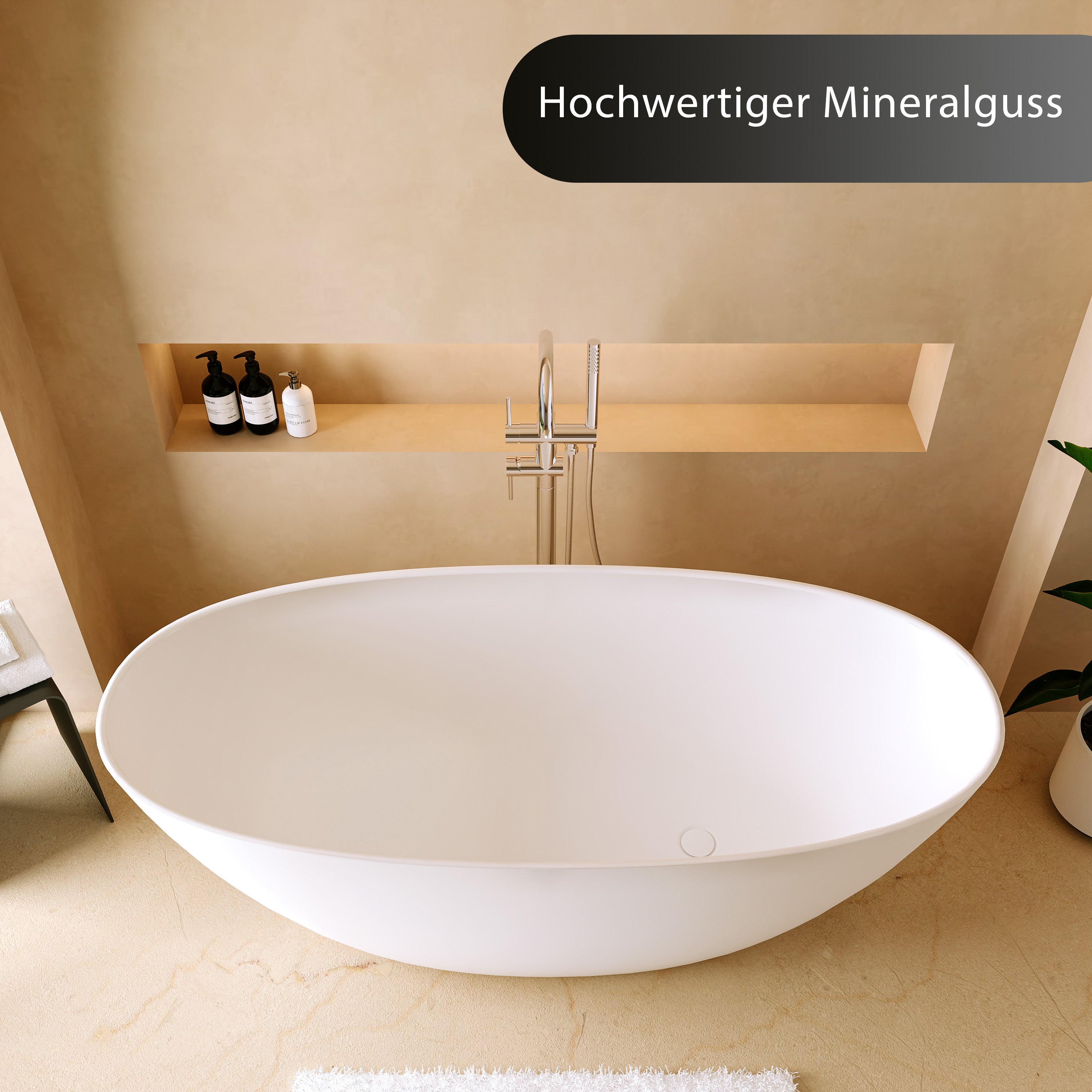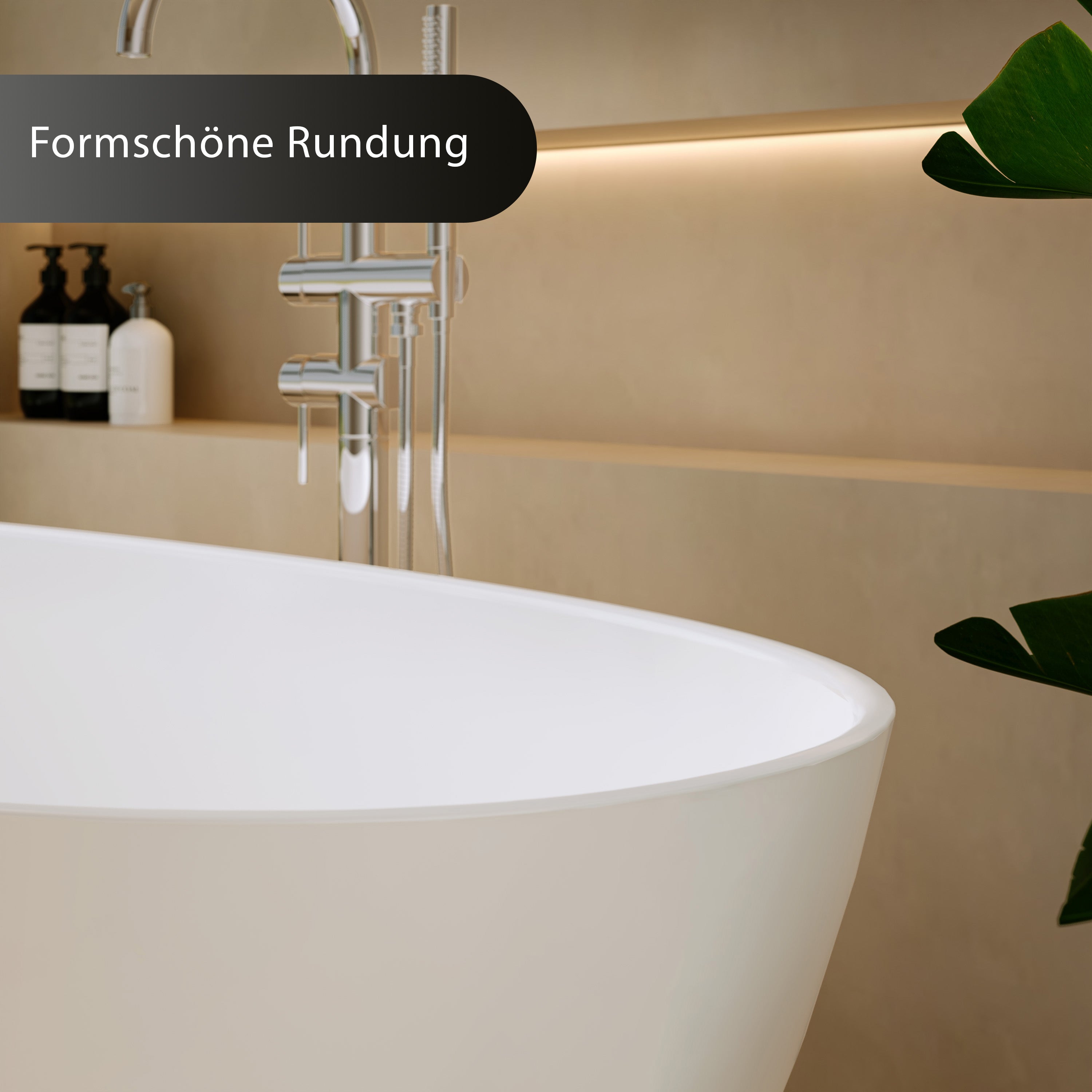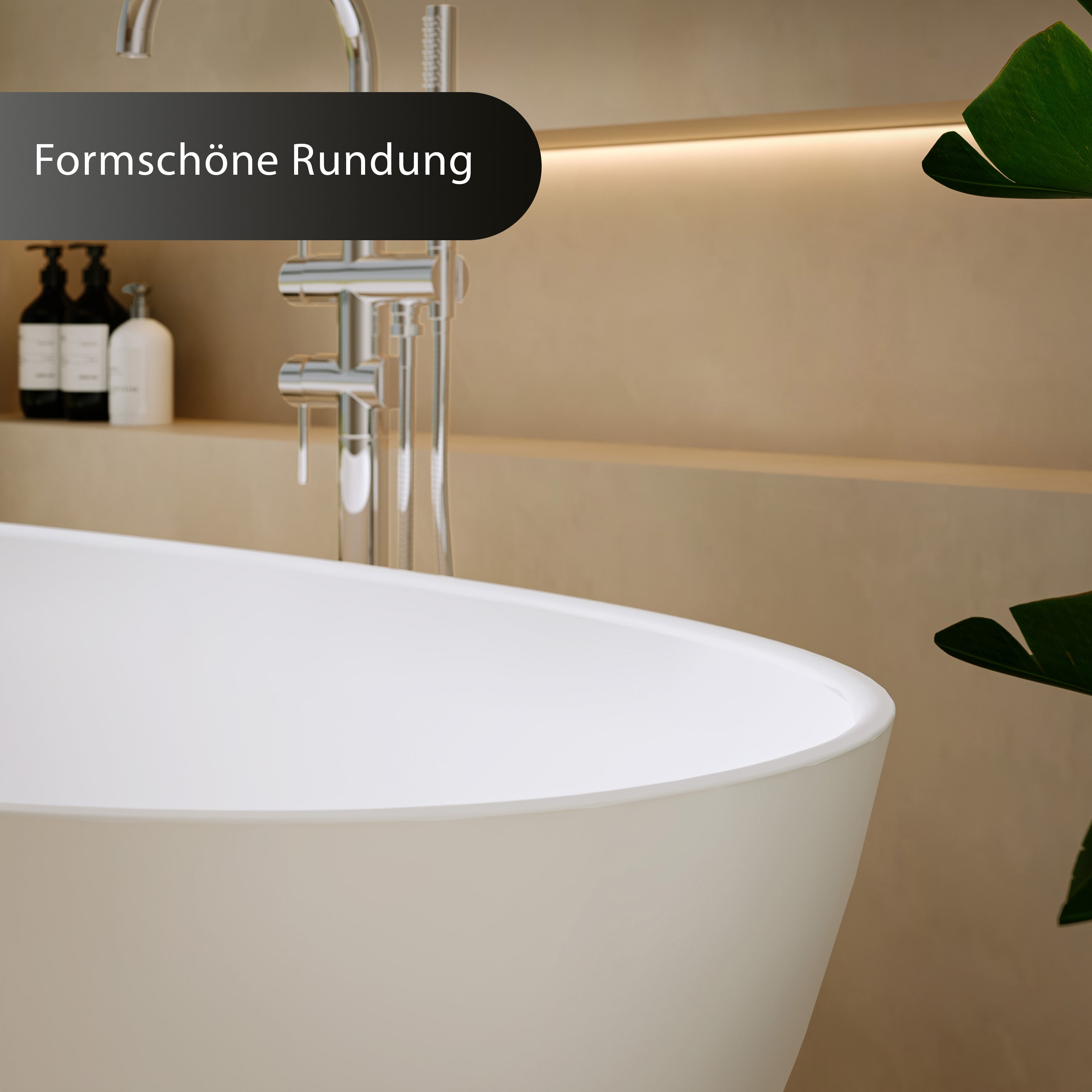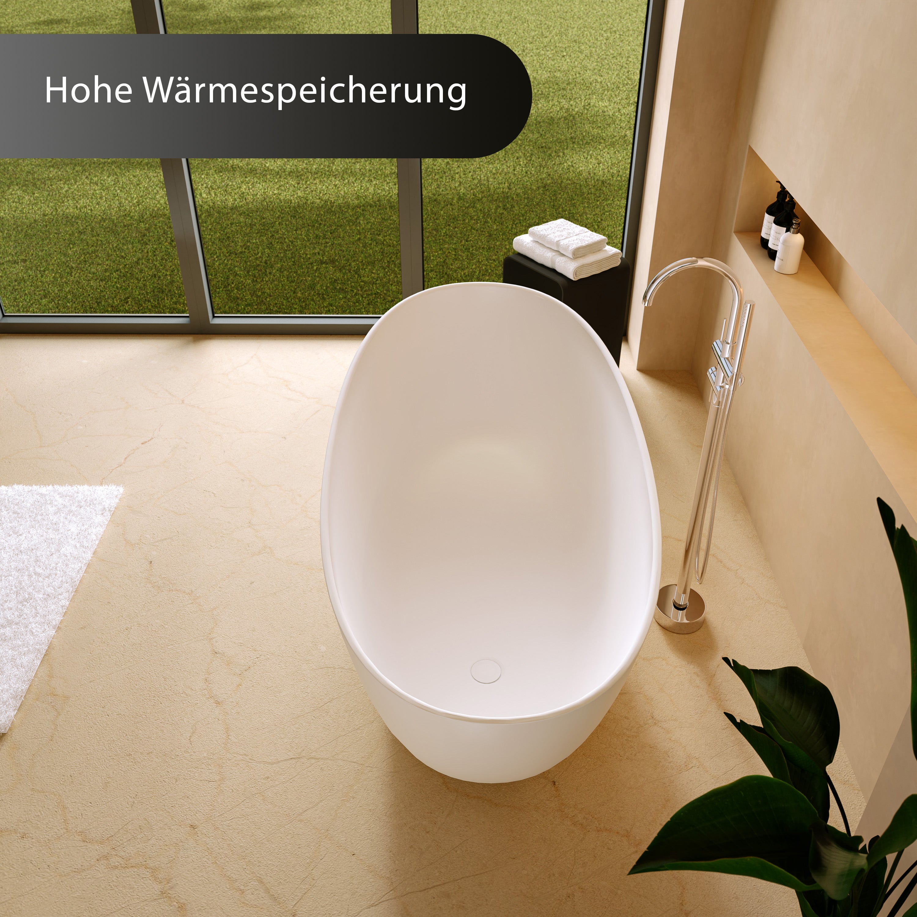 Dolvhin® Freistehende Badewanne aus Mineralguss "Fiji" | Oval | 160x70x57 cm