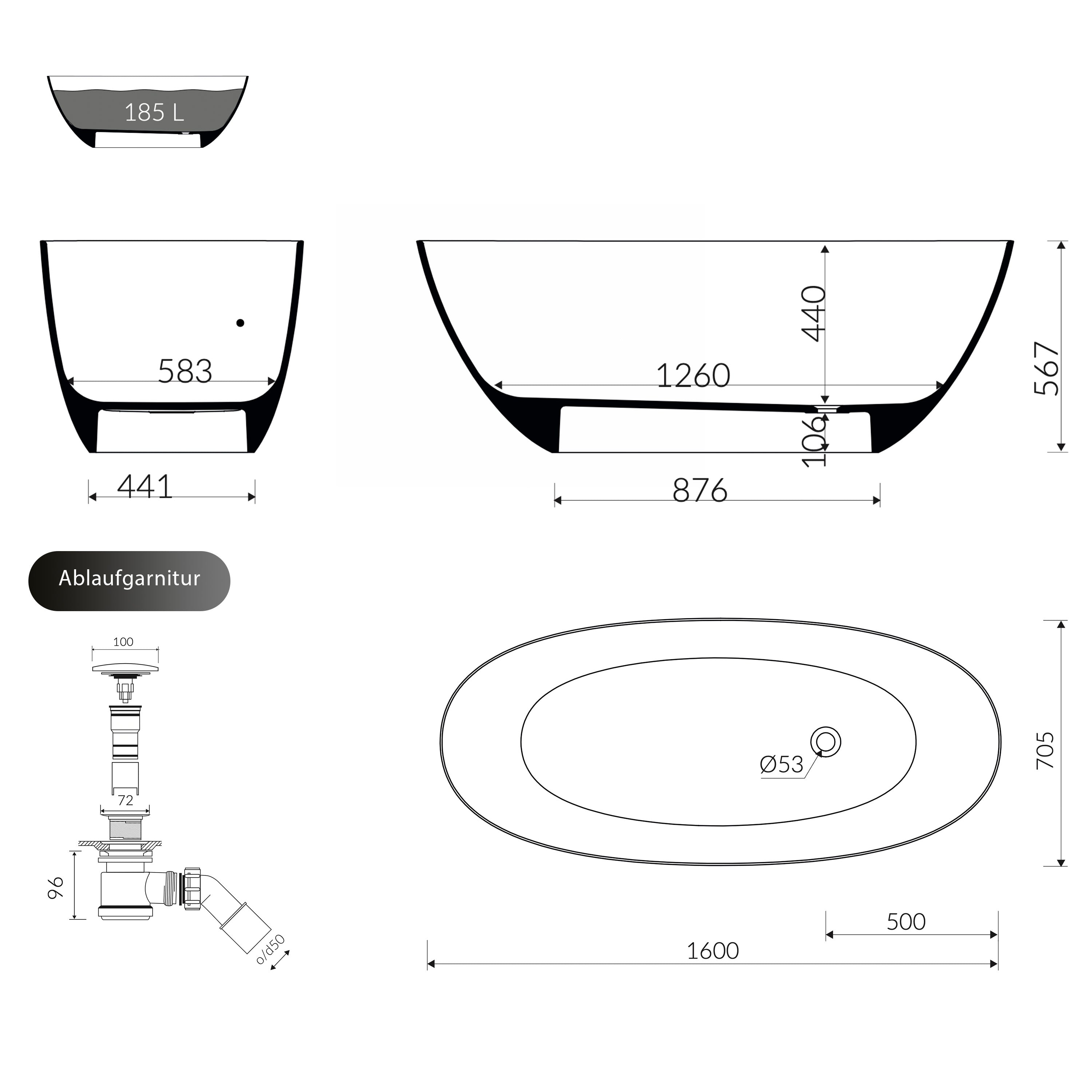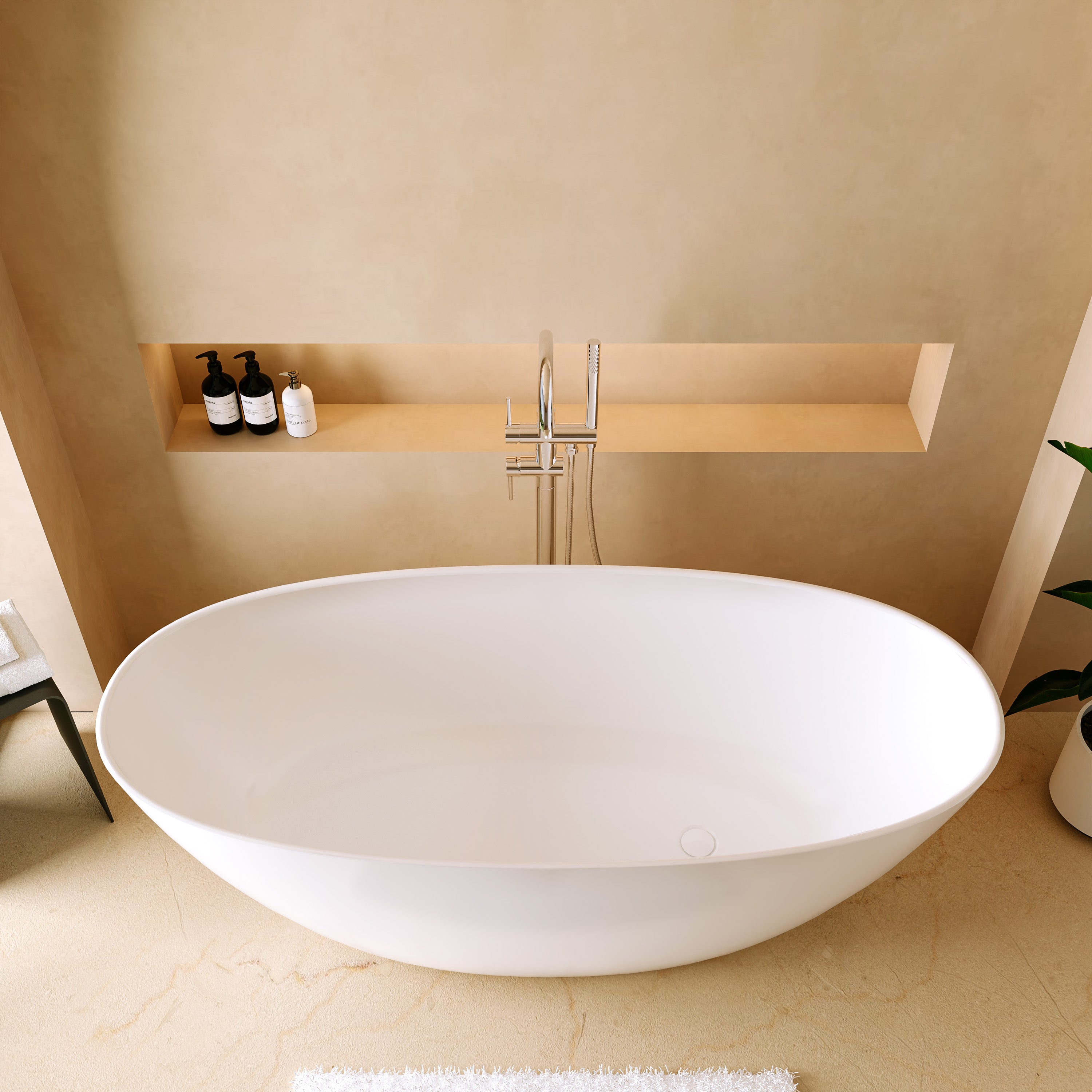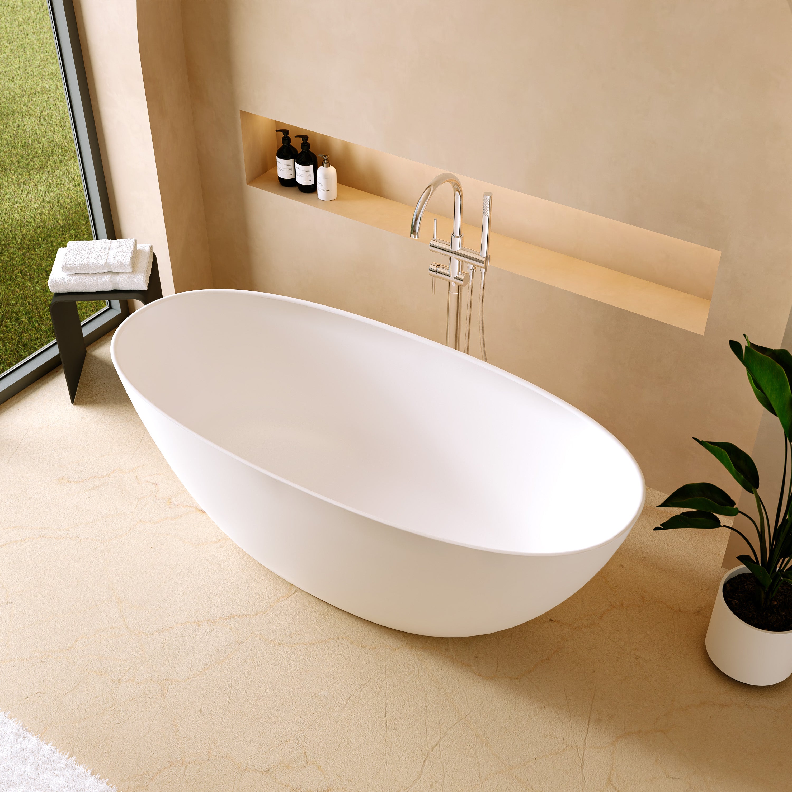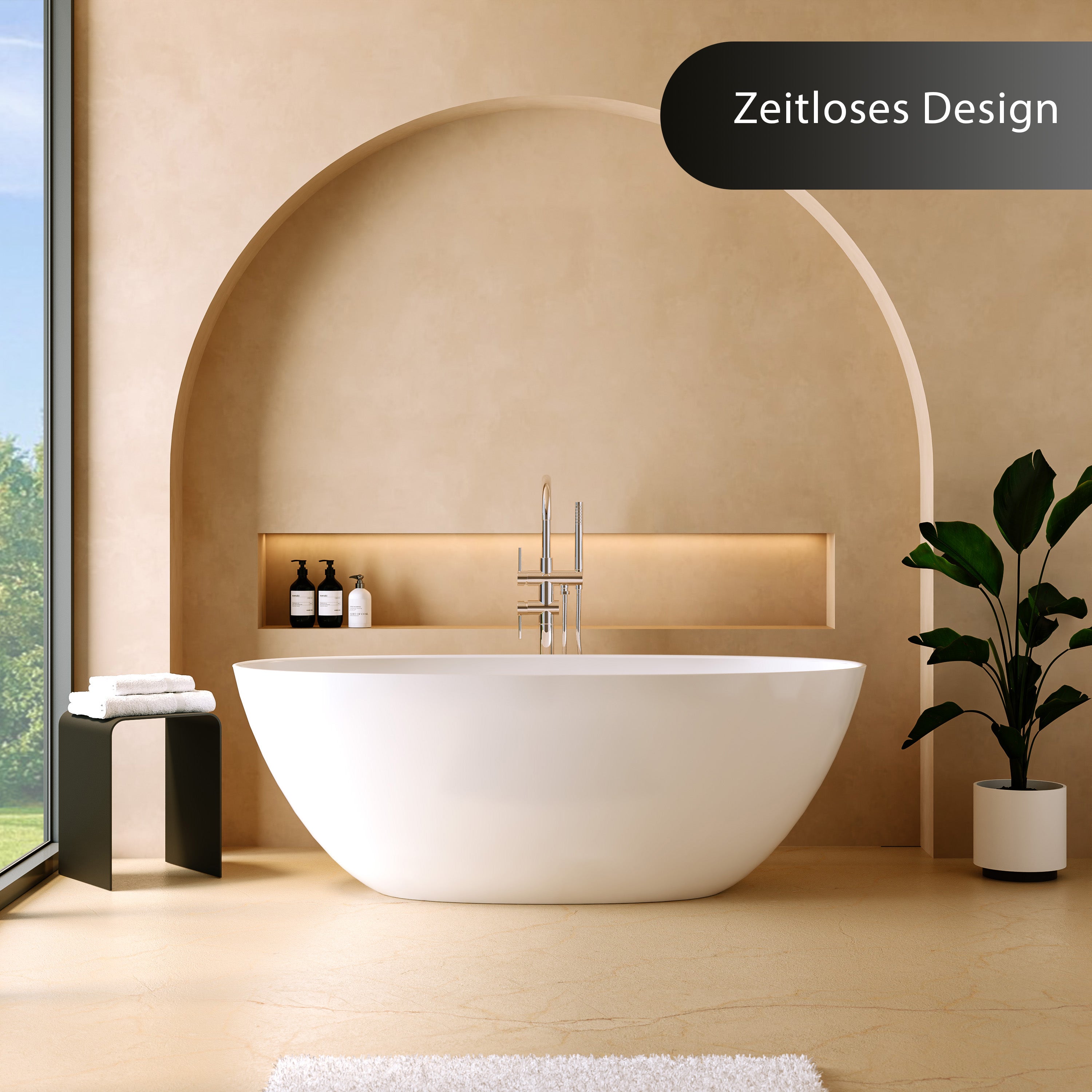 Dolvhin® Freistehende Badewanne aus Mineralguss "Fiji" | Oval | 160x70x57 cm