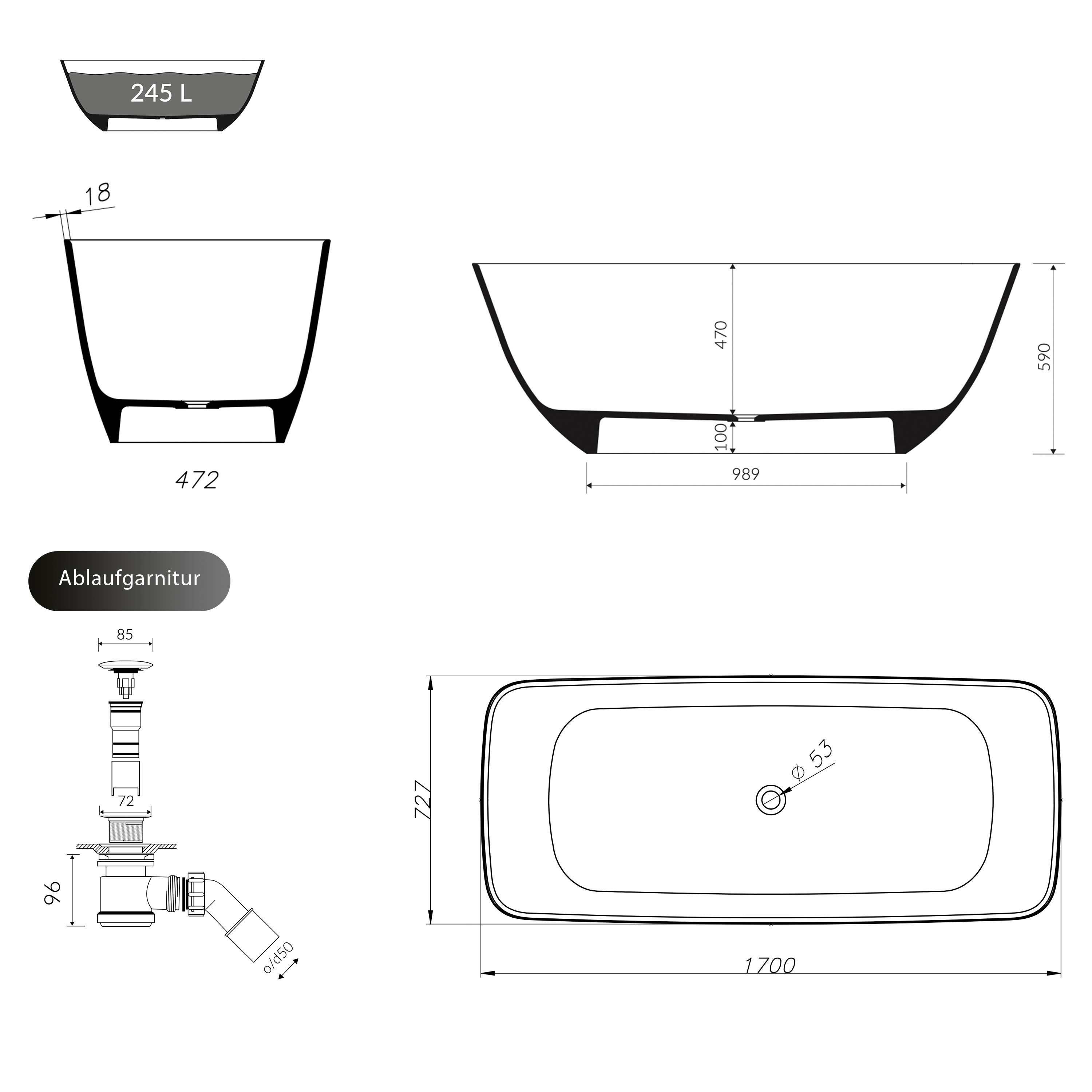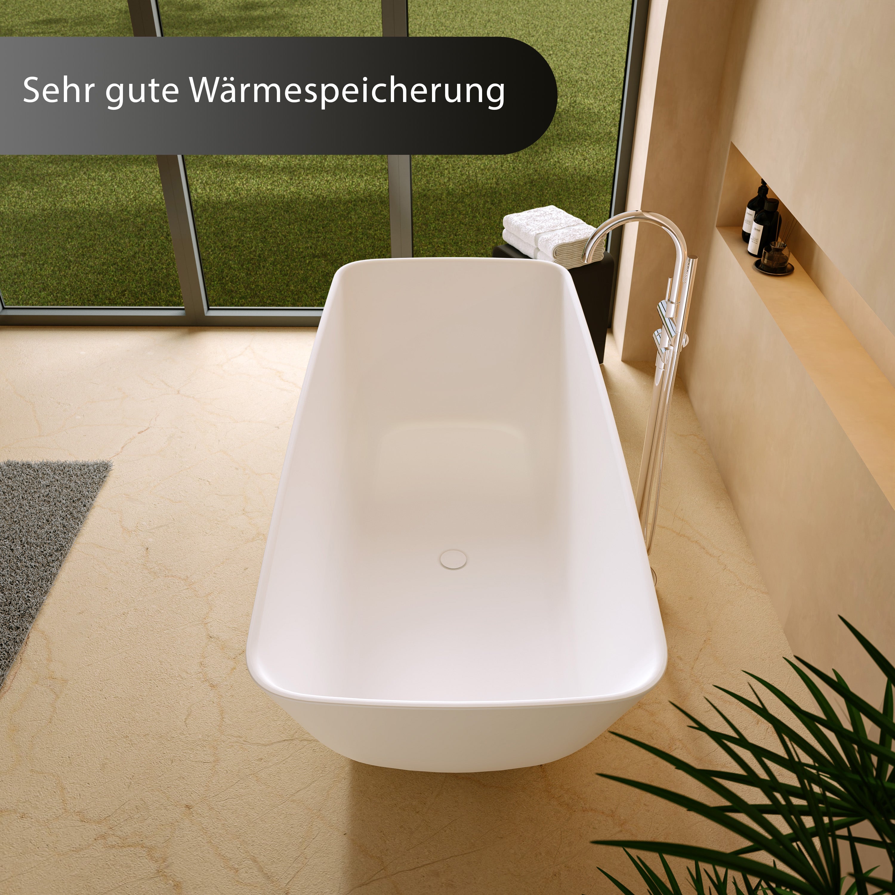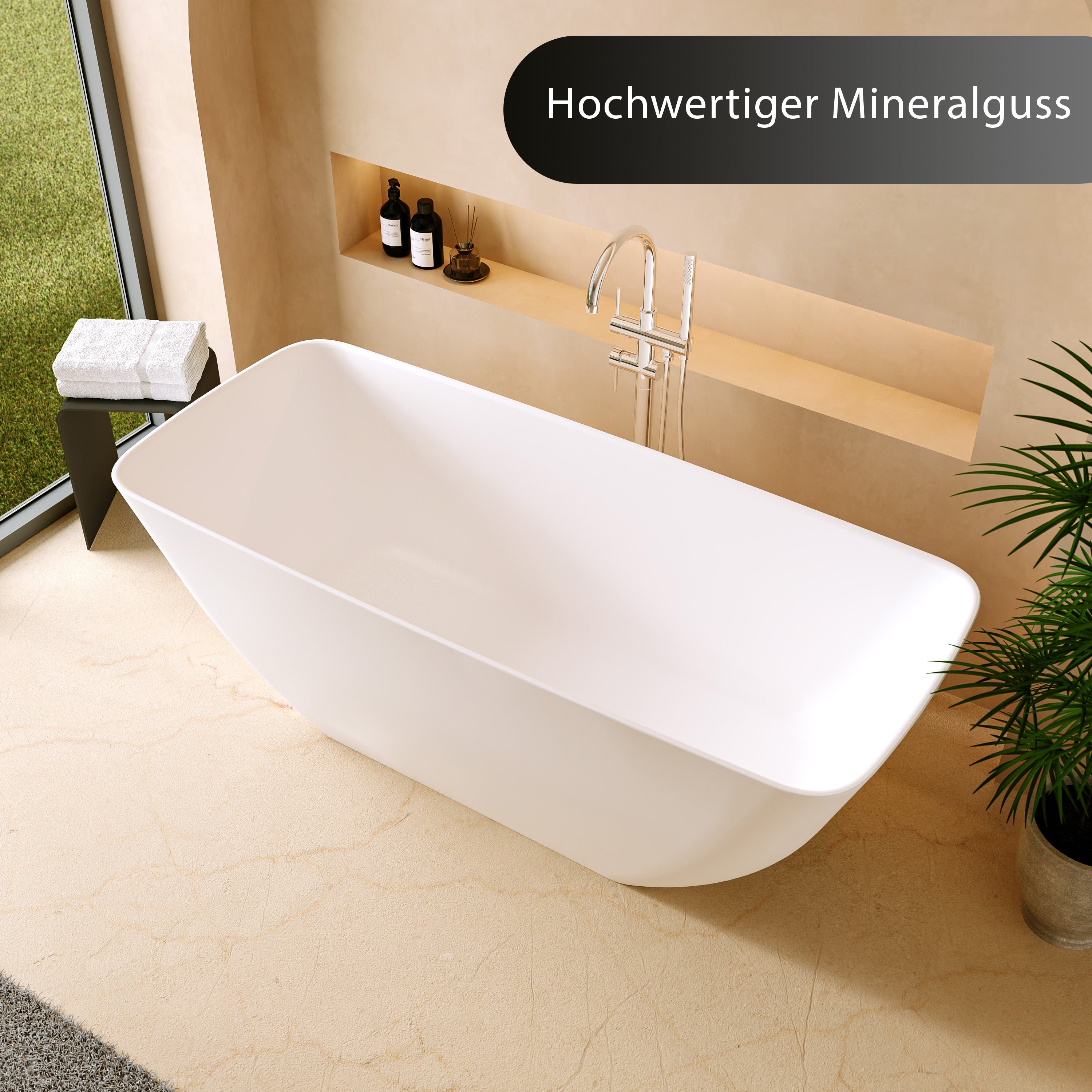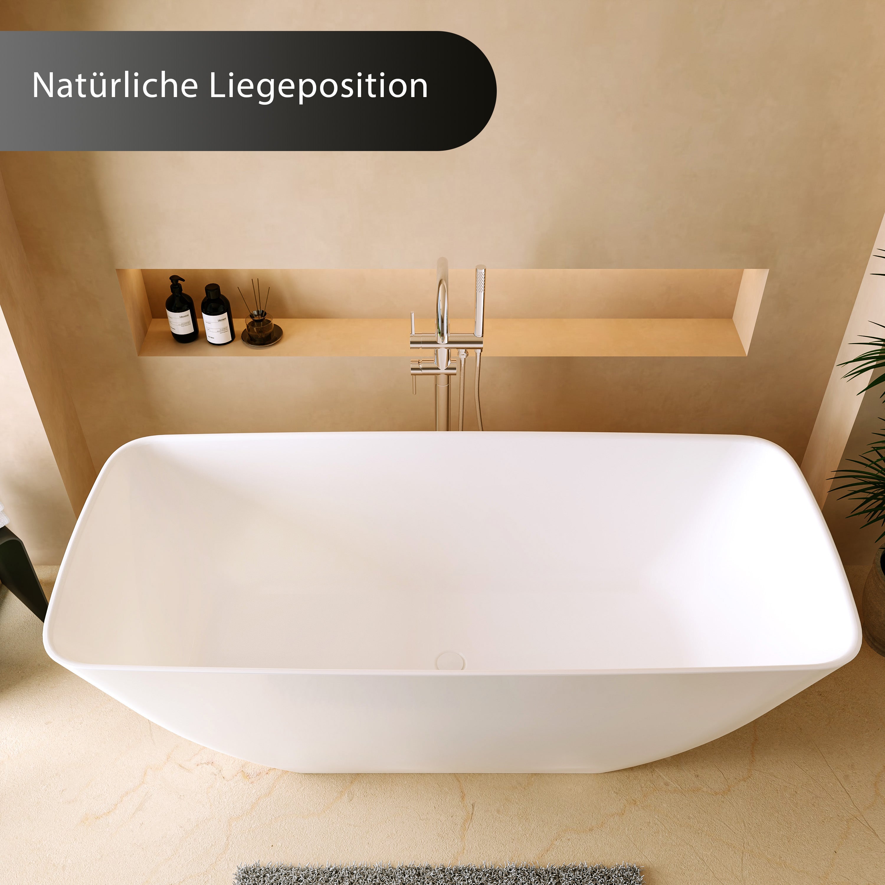 Dolvhin® Freistehende Badewanne aus Mineralguss "Curacao" | Eckig | 170x73x59 cm
