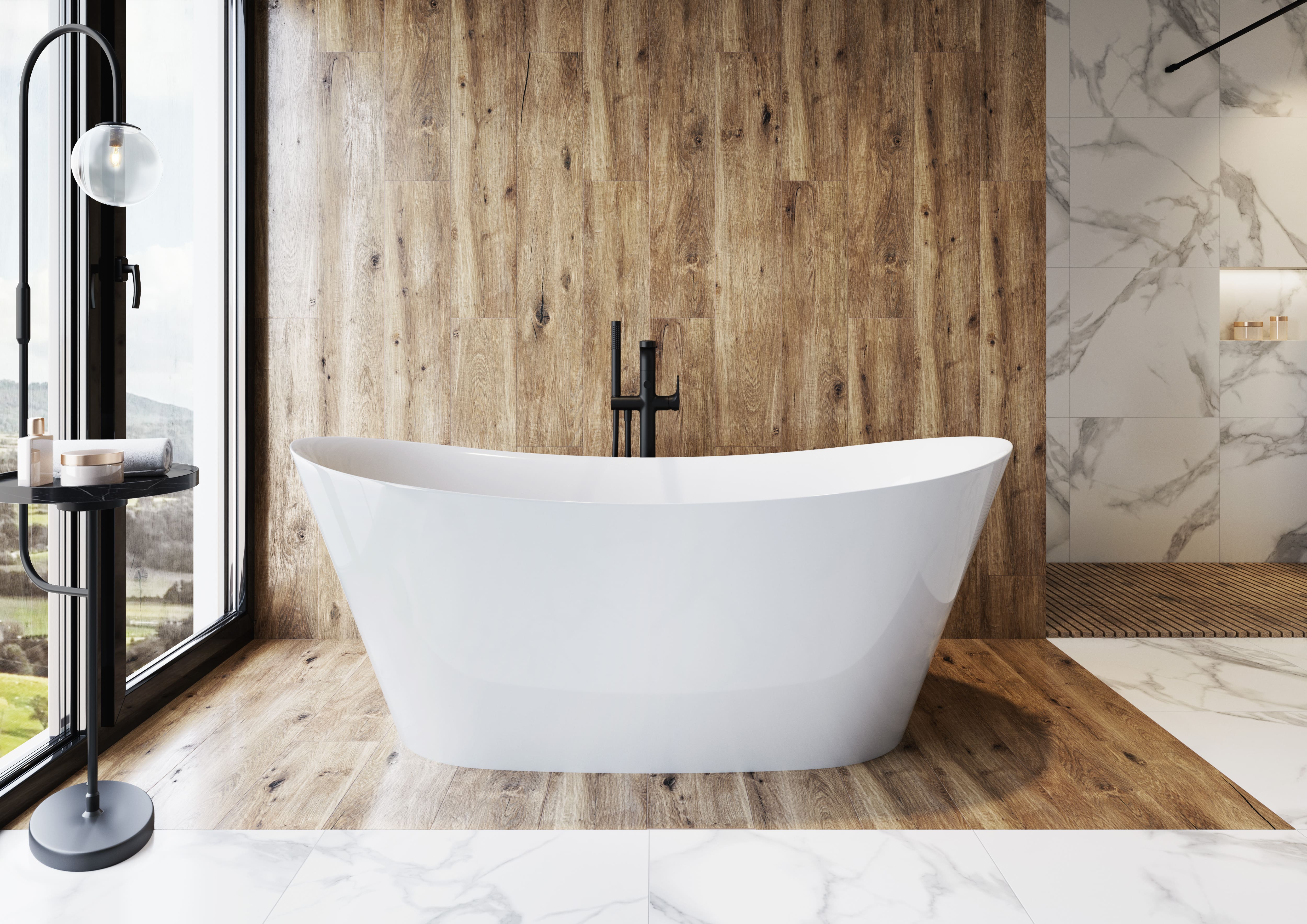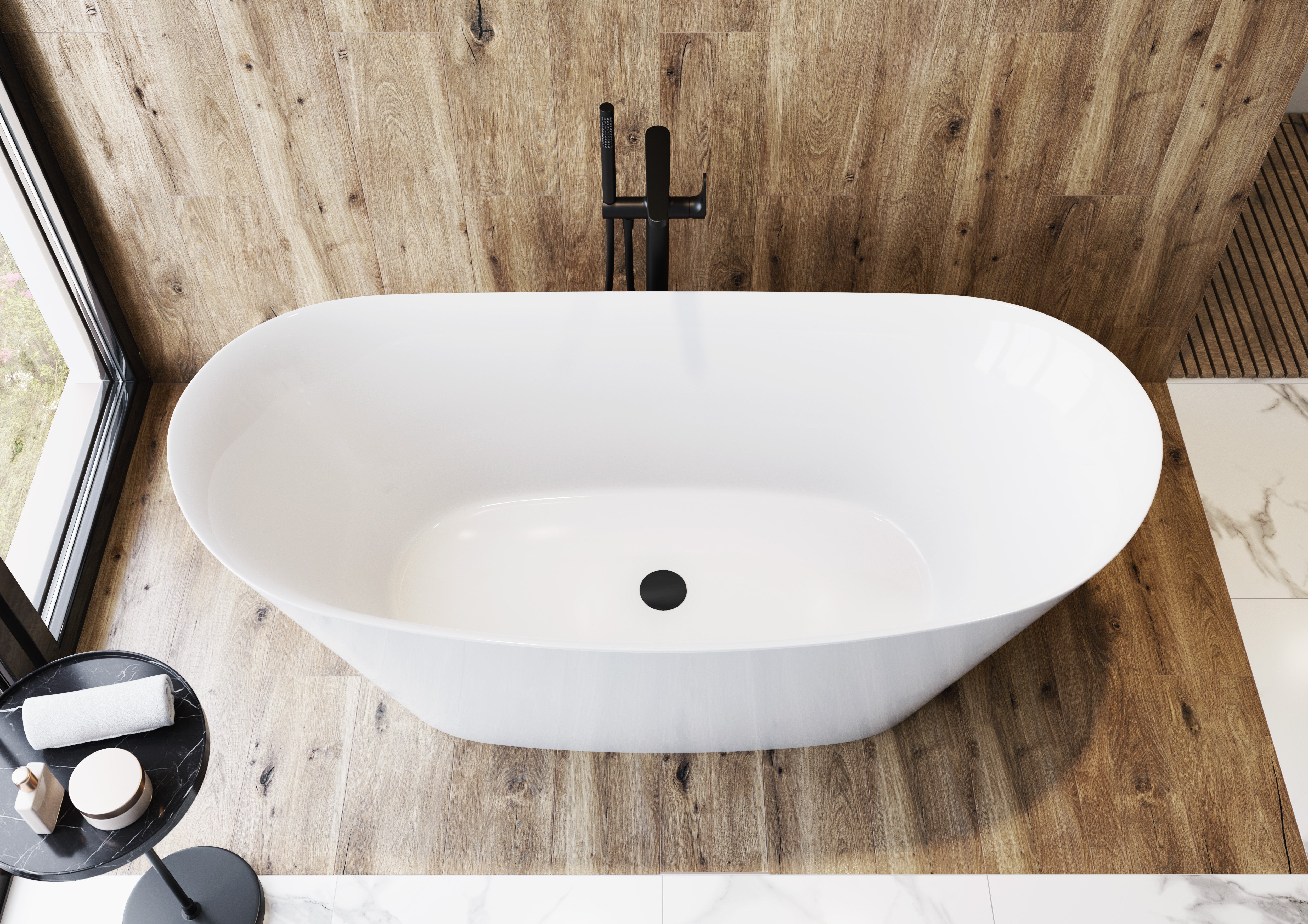 Leichtgewicht: Die Acryl-Badewanne ist leichter als viele andere Materialien, was die Installation erleichtert und weniger Belastung für die Badezimmerstruktur bedeutet.
