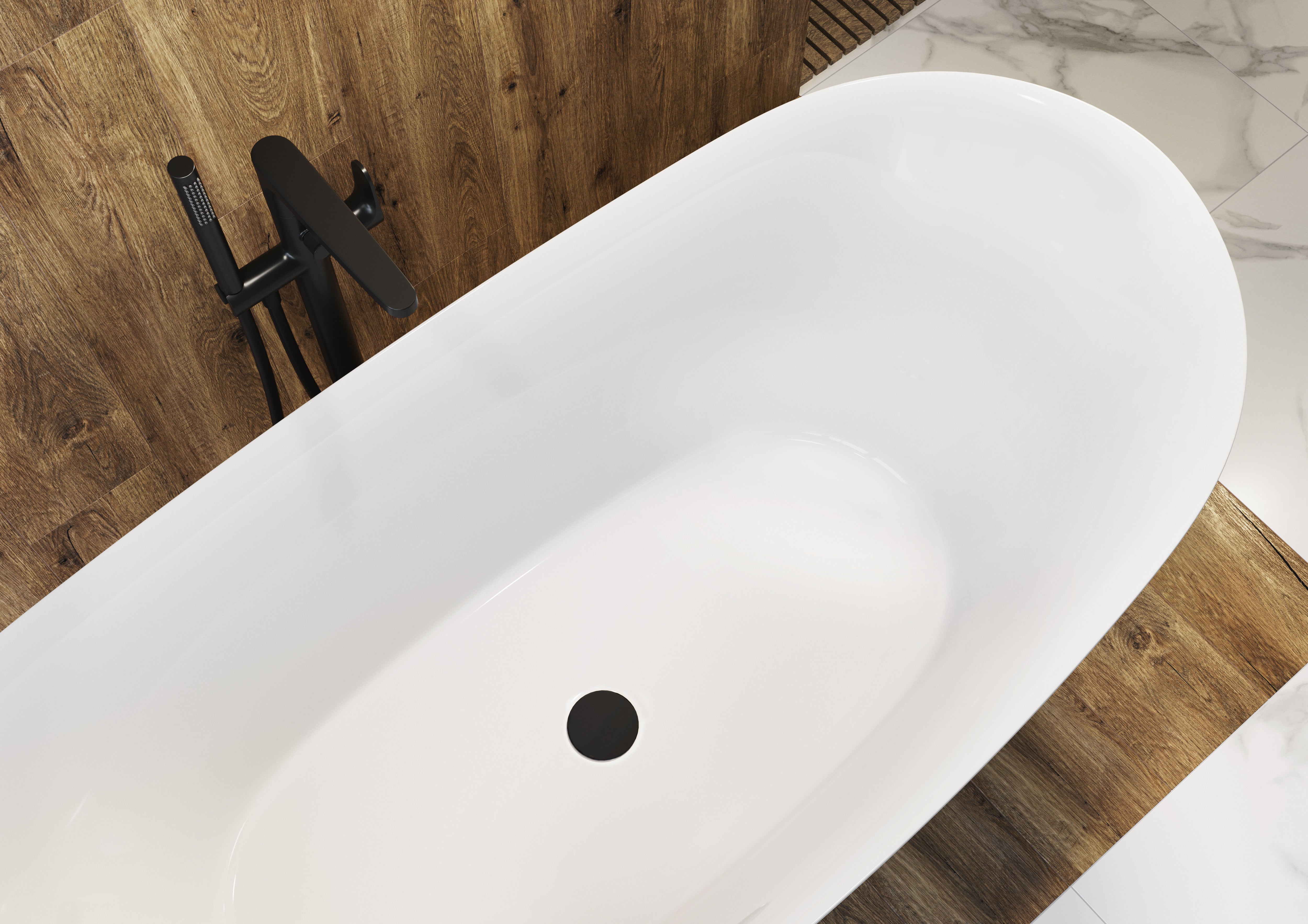 Badewanne freistehend aus Acryl "Orbit" | Oval weiß glänzend | 170x80x45 cm