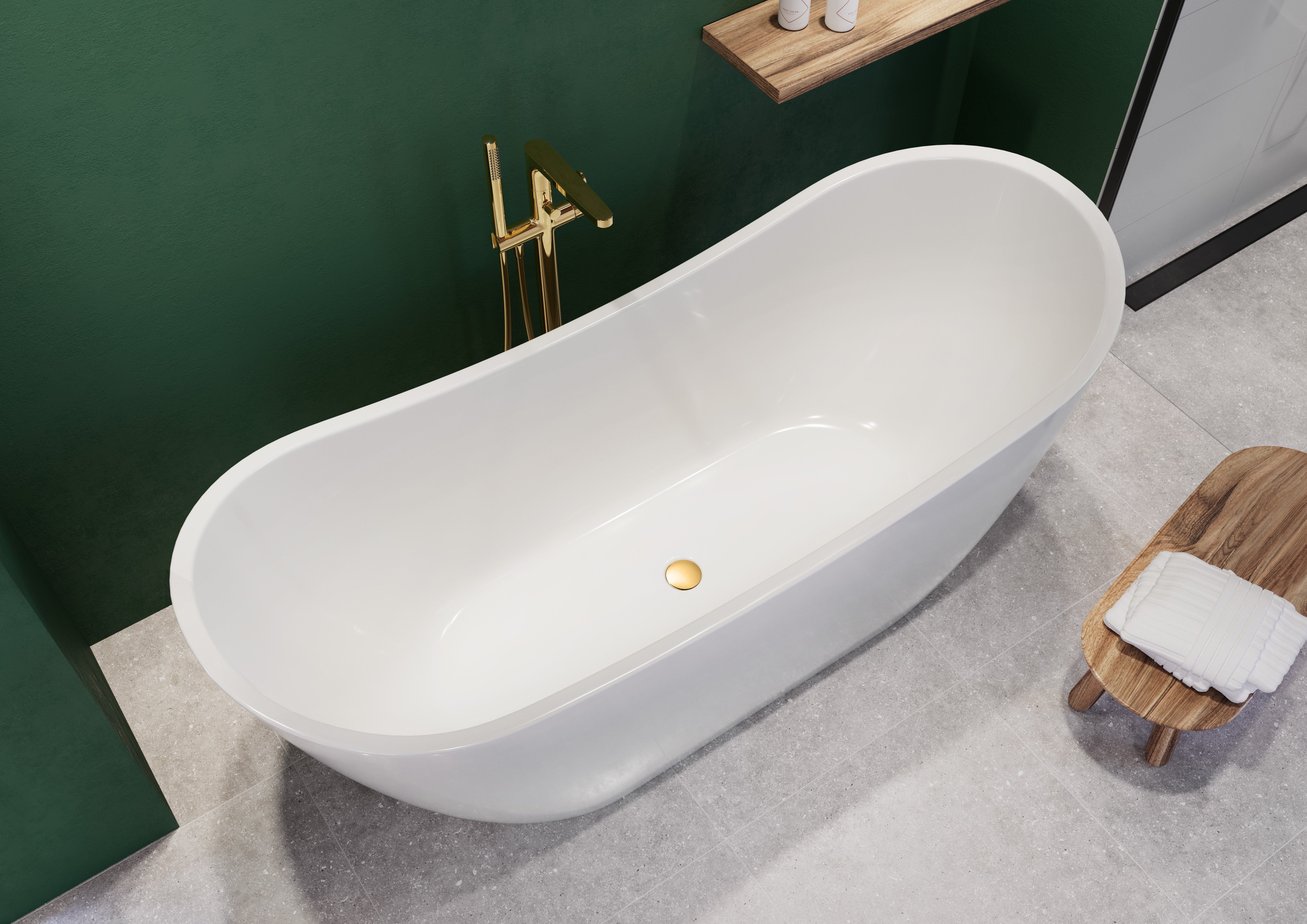 Badewanne freistehend aus Acryl "Vento" | Oval weiß glänzend | 182x71 x45 cm