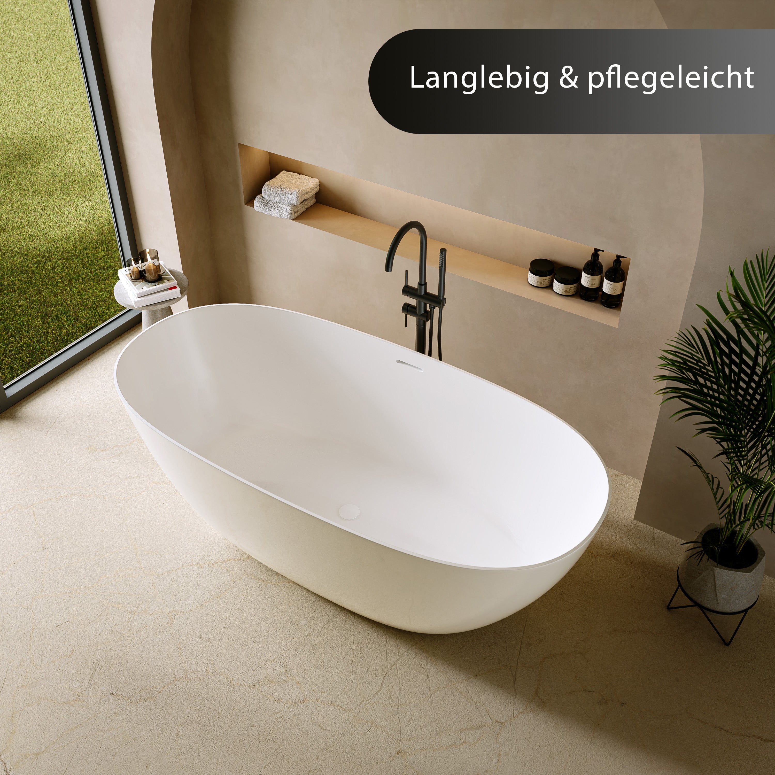 Dolvhin® Freistehende Badewanne aus Mineralguss "Capri" | Oval | 170x80x59 cm