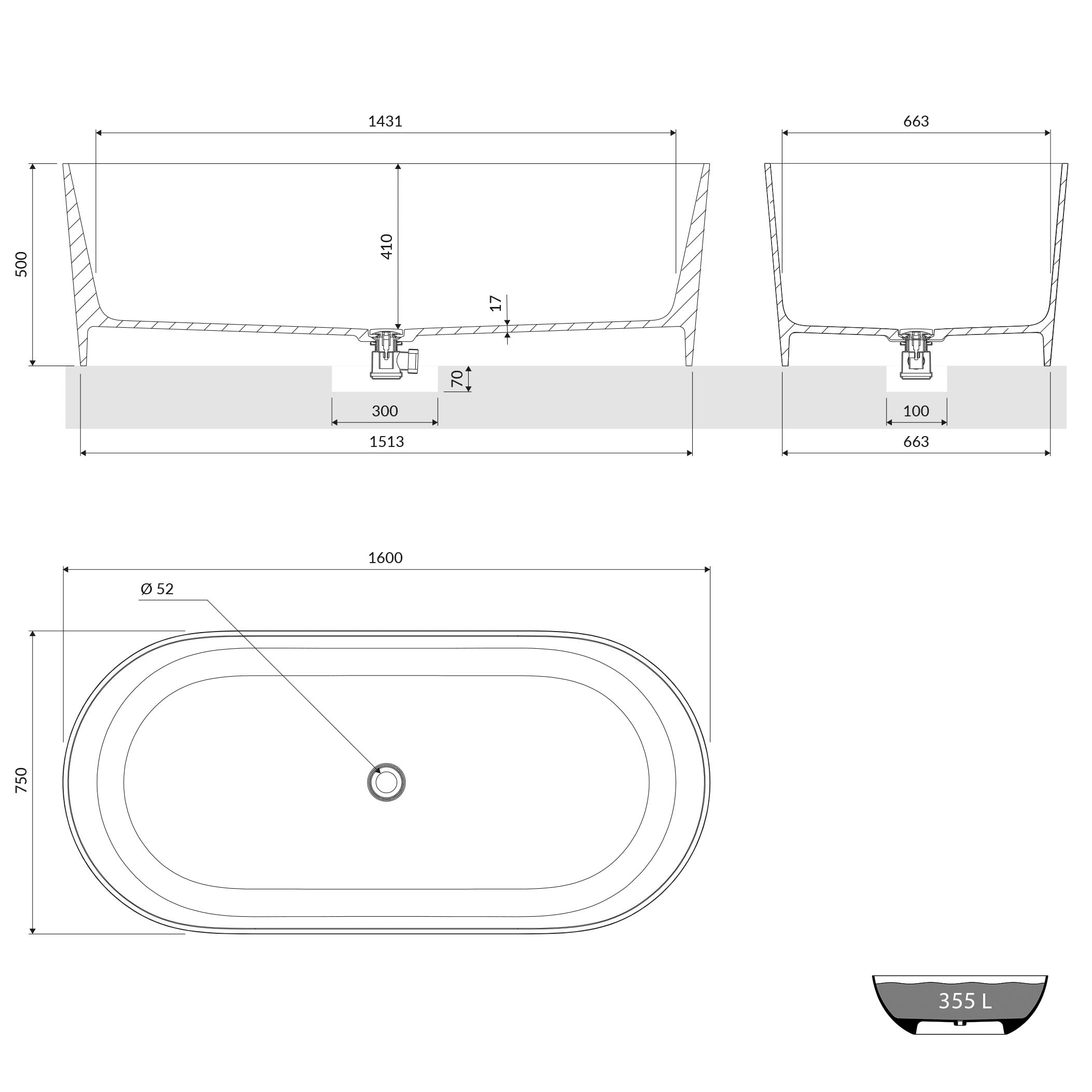 Ein echtes Highlight im Badezimmer, der durch sein elegantes Design und Stabilität überzeugt. Die elegante Mineralguss-Badewanne bietet mit einem Fassungsvermögen von 355 Litern ein hervorragendes Badeerlebnis. Die großzügigen Abmessungen von 160 x 75 x 50 cm erlauben eine geräumige Liegefläche, die zum Entspannen und Genießen einlädt.