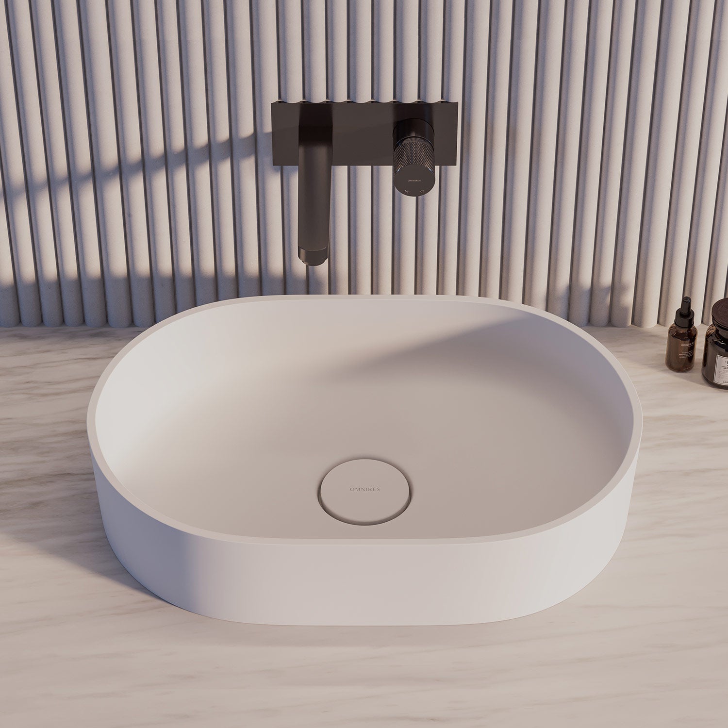 Die Quadro Wall wird aus hochwertigem gegossenem Stein (Cast Stone) gefertigt – einem langlebigen Komposit aus natürlichem Mineral und widerstandsfähigem Harz. Die samtmatte Oberfläche ist porenfrei, hygienisch und fühlt sich angenehm warm an. Perfekt für anspruchsvolle Badnutzer, die Wert auf Qualität und Ästhetik legen.
