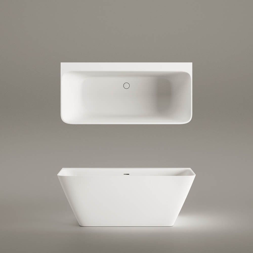 Ein echtes Highlight im Badezimmer, der durch sein elegantes eckiges Design überzeugt. Die freistehende Badewanne mit Rückwand bietet ein Fassungsvermögen von 240 Litern. Dank mittigem Ablauf und der komfortablen Liegeposition bietet die Badewanne ein hervorragendes Badeerlebnis.