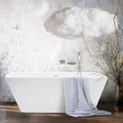 Dank ihrer geraden Rückseite vereint diese freistehende Badewanne modernes Design mit praktischer Raumersparnis. Sie lässt sich direkt an der Wand platzieren – eine ideale Lösung für kleinere Bäder oder minimalistische Raumkonzepte mit klaren Linien.