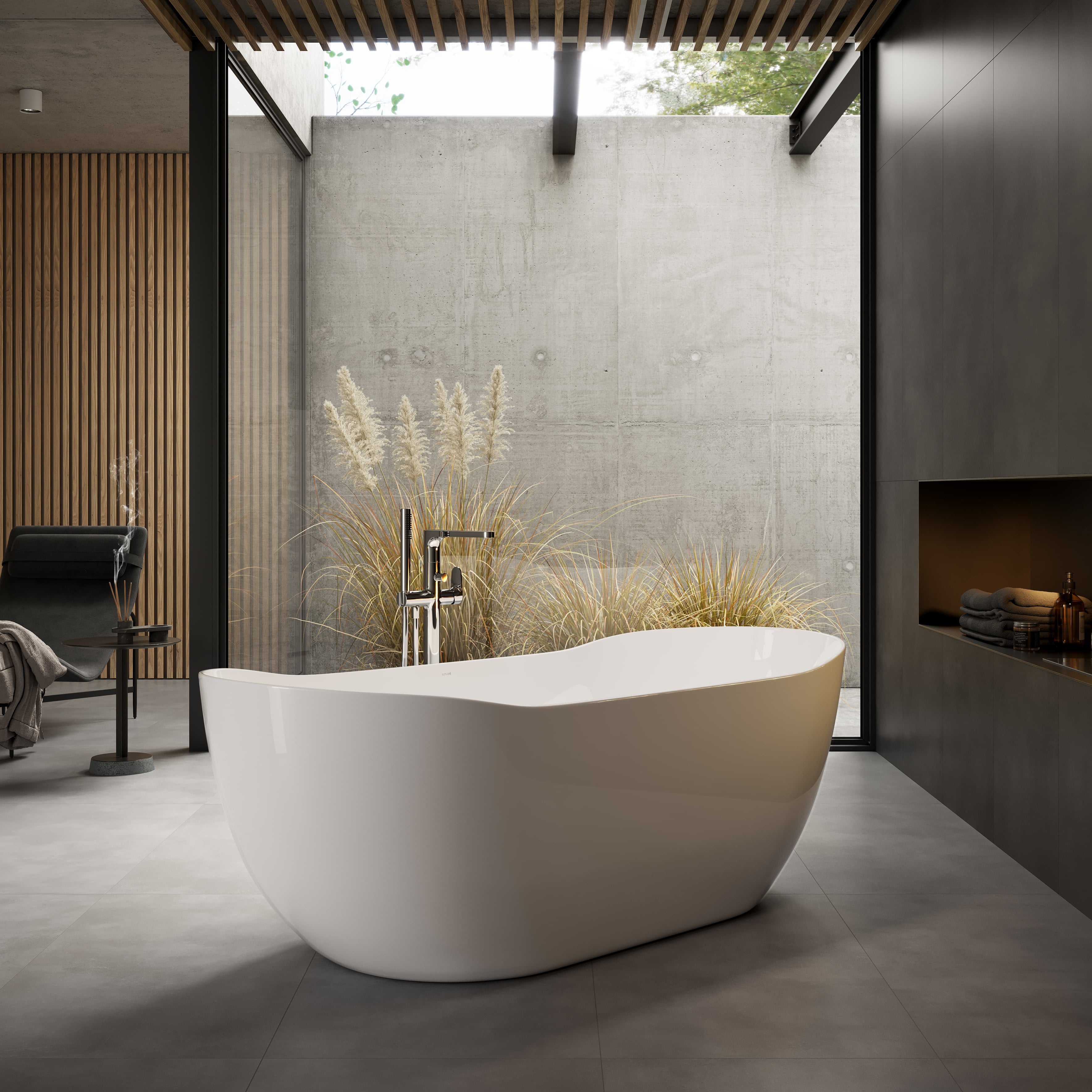 Ein echtes Highlight im Badezimmer, der durch sein elegantes eckiges Design überzeugt. Die freistehende Badewanne bietet ein Fassungsvermögen von 270 Litern. Dank mittigem Ablauf und der komfortablen Liegeposition bietet die Badewanne ein hervorragendes Badeerlebnis.