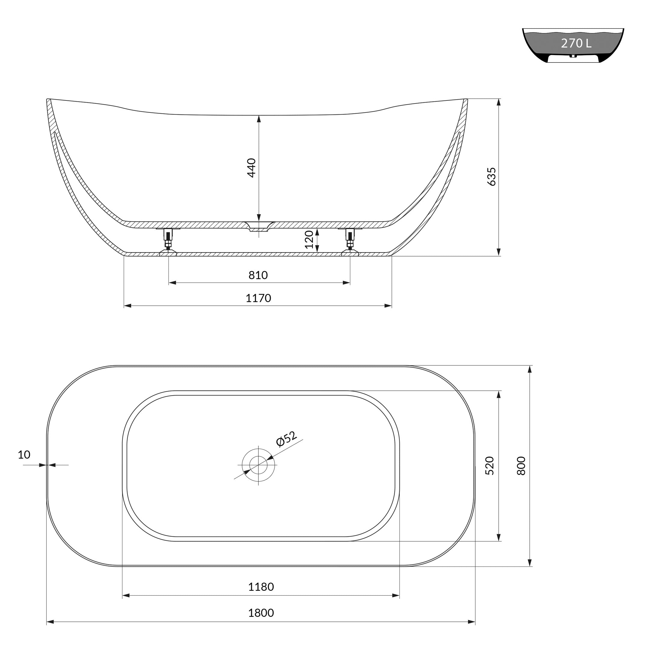 Entdecke die perfekte Kombination aus Eleganz und Komfort mit unserer freistehenden Badewanne. Mit den großen Maßen von 180 x 80 x 44 cm bietet sie dir viel Platz, um dich nach einem langen Tag zu entspannen.
