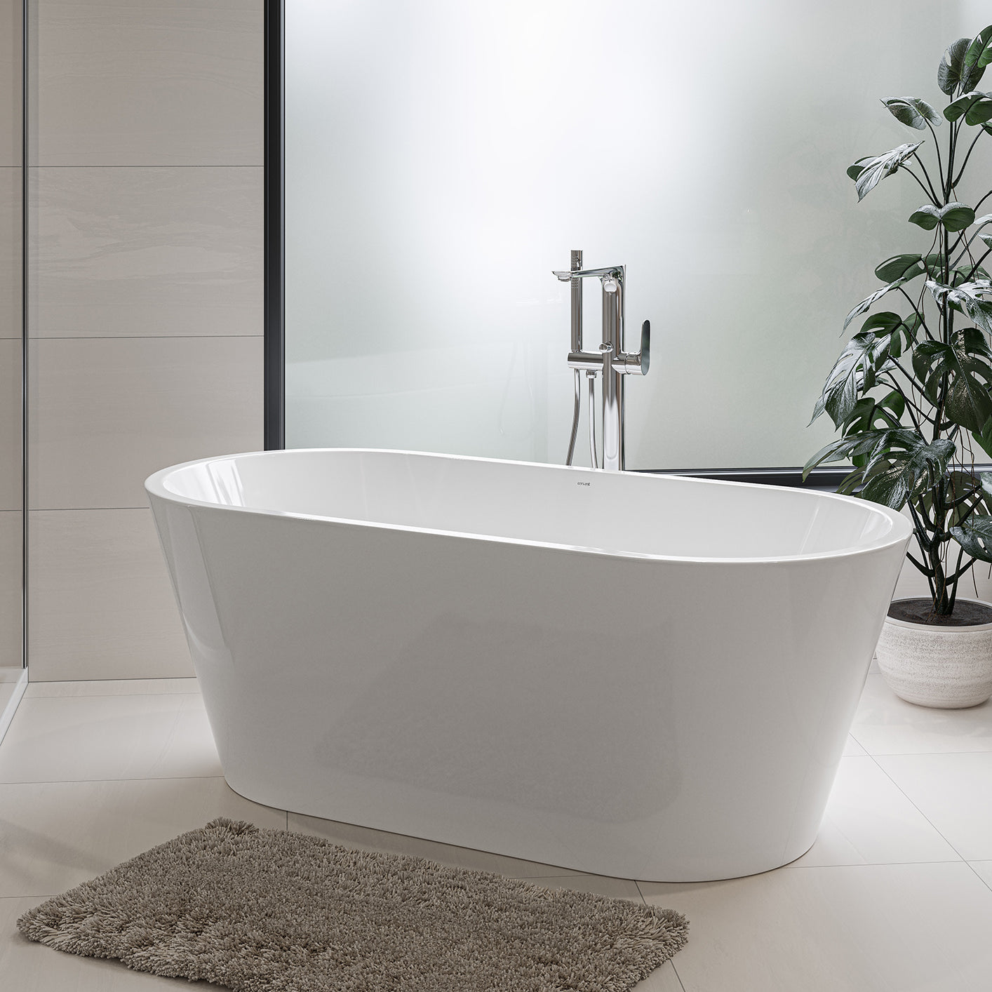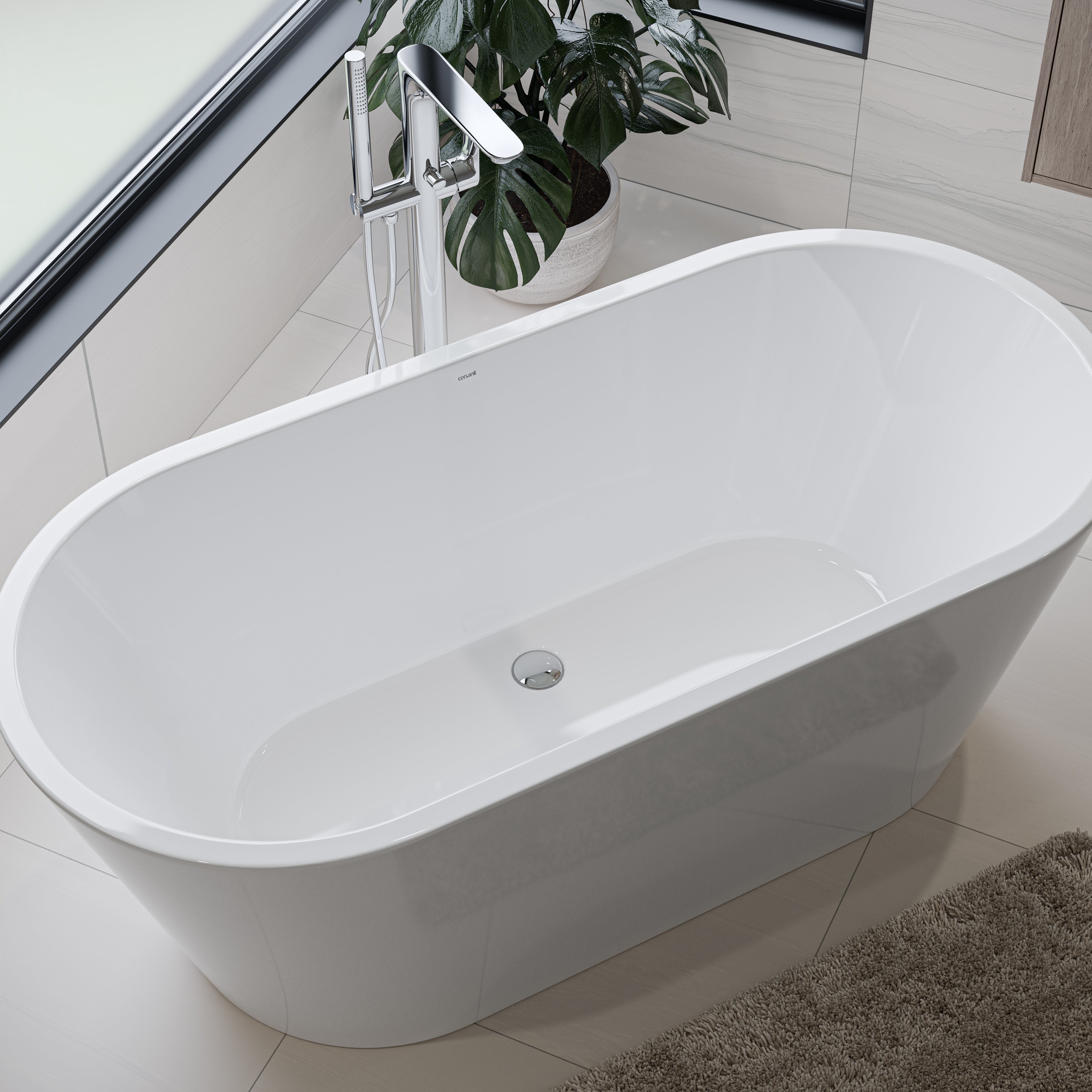 Badewanne freistehend aus Acryl "Linea" | Oval weiß glänzend | 160 x 75 x 44,5 cm