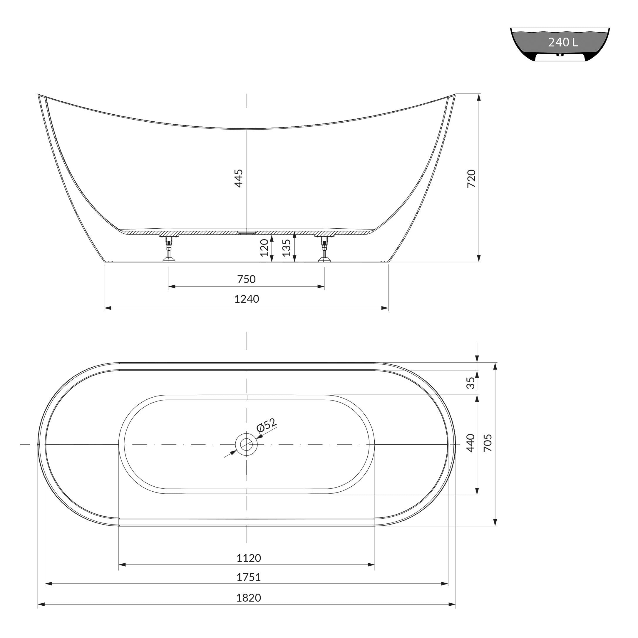 Entdecke die perfekte Kombination aus Eleganz und Komfort mit unserer freistehenden Badewanne. Mit den großen Maßen von 182x71x45 cm bietet sie dir viel Platz, um dich nach einem langen Tag zu entspannen.