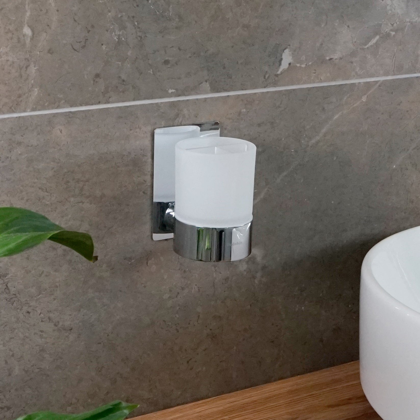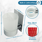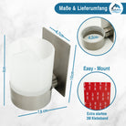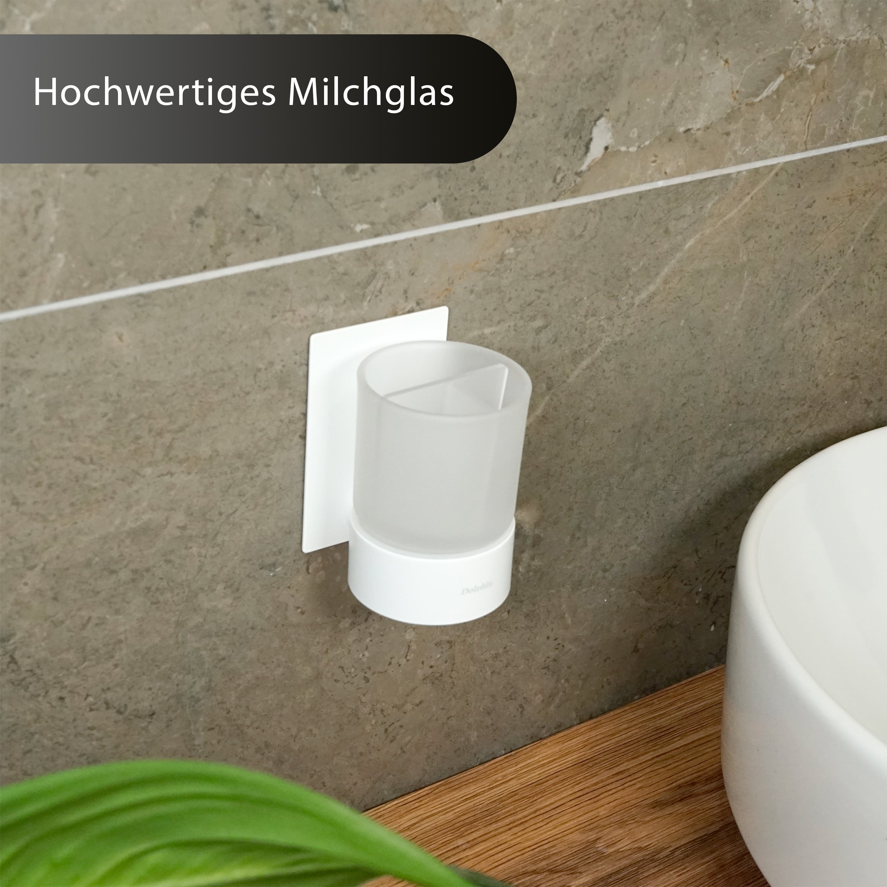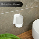 Der Zahnbürstenhalter zum Kleben ist speziell auf den Einsatz im Bad abgestimmt. Durch die Verwendung von hochwertig verarbeitetem SUS304 Edelstahl und satiniertem Weißglas wird eine wasserfeste als auch rostfreie Beschaffenheit gewährleistet. Zudem weist es eine gute Beständigkeit gegenüber hoher Luftfeuchtigkeit auf. Für eine lange Lebensdauer empfehlen wir den Glas Becher und die Edelstahl Wandhalterung regelmäßig zu reinigen und zu pflegen. So vermeidest du Kalkablagerungen und behältst die schöne Optik bei.