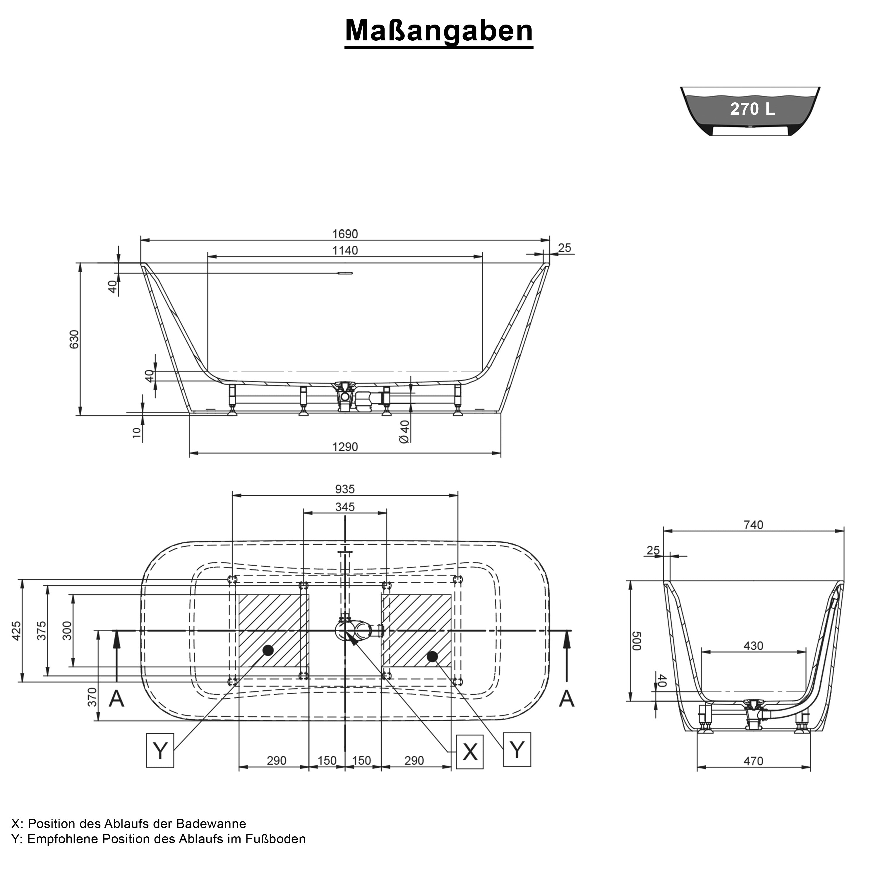 Leiser Wasseraufprall: Durch die hohe Materialdichte wird der Wasseraufprall spürbar gedämpft. Das reduziert Geräusche beim Einlassen des Wassers und sorgt für ein besonders ruhiges, entspanntes Badeerlebnis.