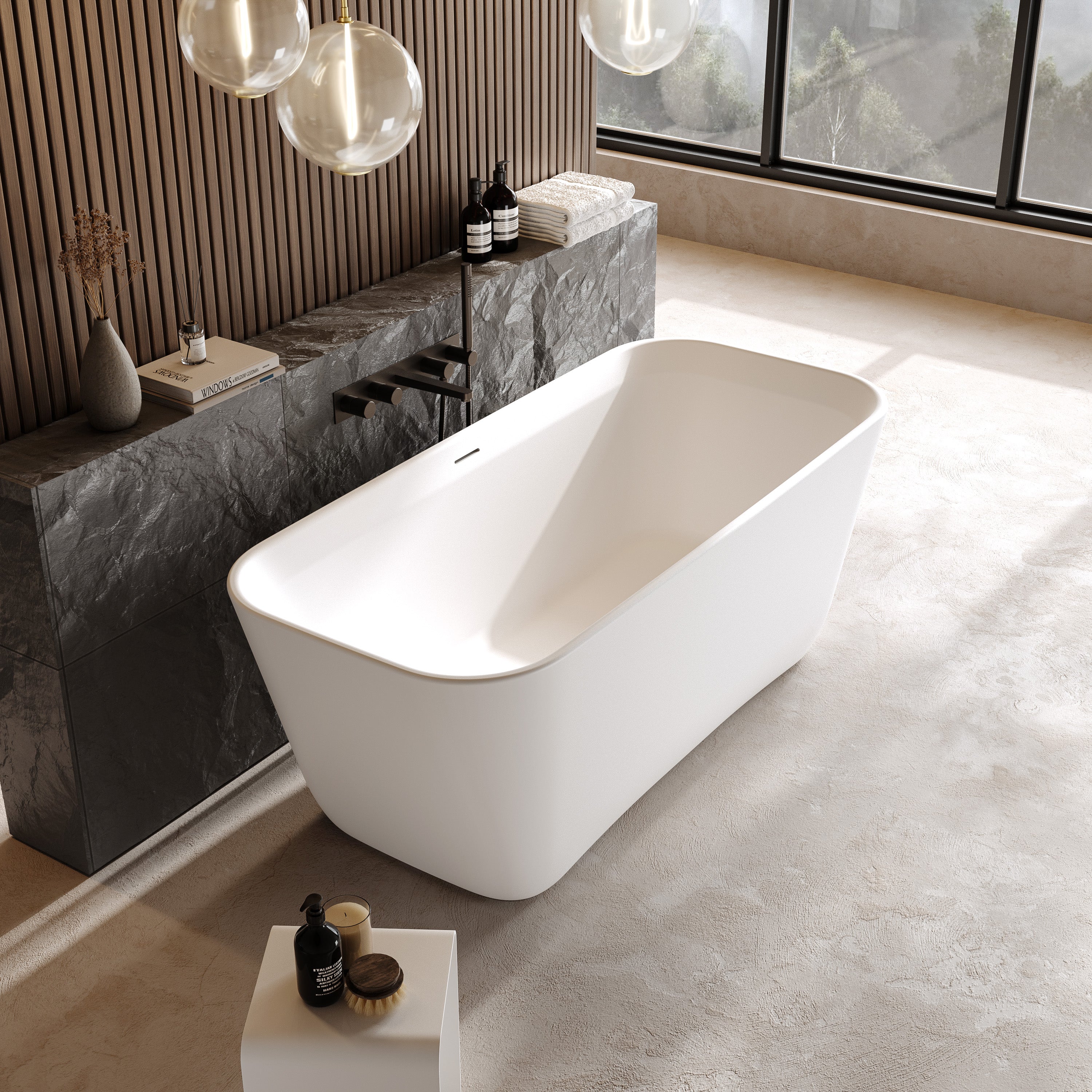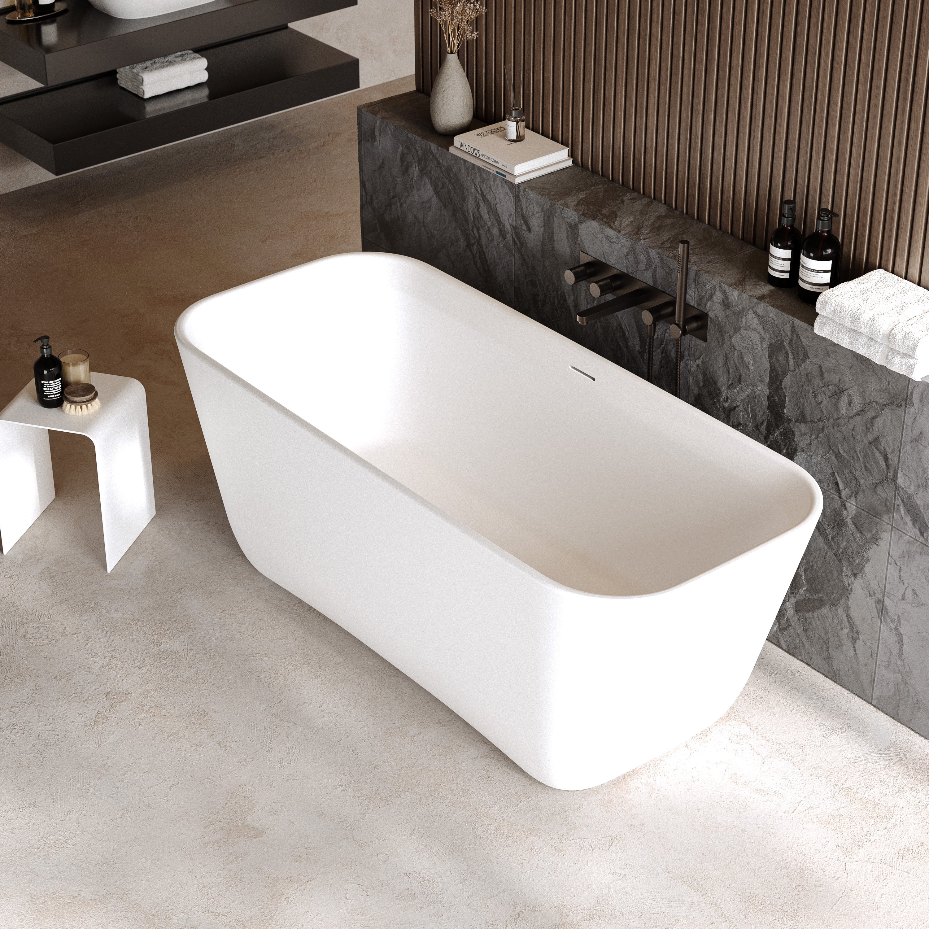 Dolvhin® Freistehende Badewanne „Eluna“ | XONYX Solid Stone Mineralguss | Eckig | 169x74x63 cm