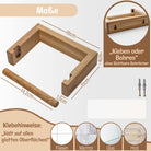 Der Holz-Klorollenhalter kann entweder geklebt oder gebohrt werden. Entscheide dich für die Methode, die deinen Bedürfnissen und den Anforderungen deines Badezimmers am besten entspricht. Die genaue Vorgehensweise, je nachdem für welche Methode du dich entscheidest, findest du in der Produktbeschreibung. Des Weiteren wird auch eine bebilderte Montageanleitung deiner Bestellung beigelegt.