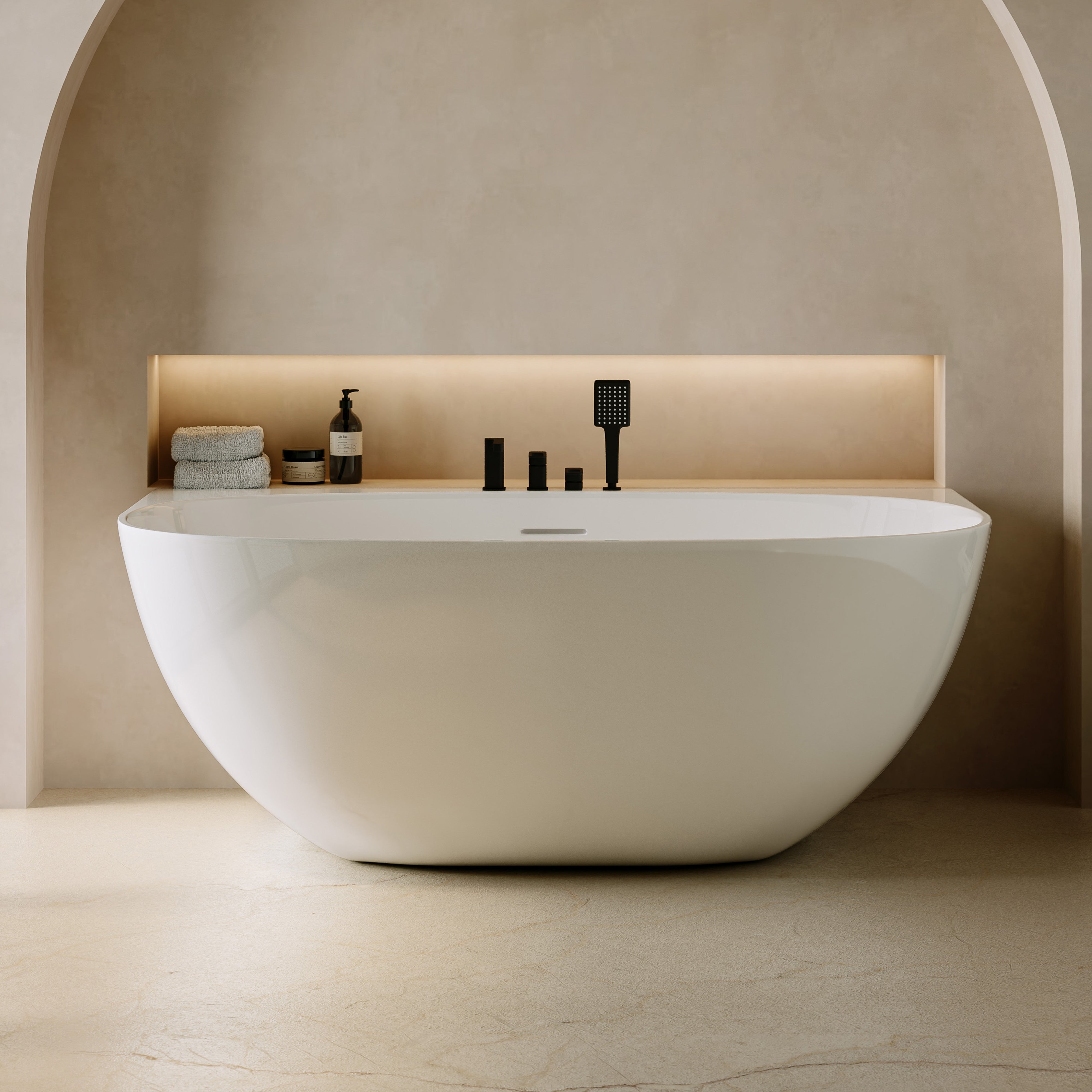 Eine halb freistehende Badewanne vereint das Beste aus zwei Welten: das elegante Design einer freistehenden Wanne und die platzsparende Funktion einer klassischen Vorwand Badewanne. Sie wird an einer Wandseite montiert, während die übrigen Seiten frei im Raum stehen – ideal für moderne Badezimmer, in denen Stil und Raumökonomie gefragt sind.