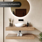 Die porenlose Gelcoat-Oberfläche fühlt sich angenehm weich und warm an und bleibt dauerhaft hygienisch glatt. Schmutz, Kalk und Wasser perlen praktisch von selbst ab – ein klarer Vorteil für alle, die ein pflegeleichtes und langlebiges Aufsatzwaschbecken suchen. Gleichzeitig bietet der robuste Mineralguss eine außergewöhnliche Stabilität und Formbeständigkeit, ideal für moderne Aufsatzwaschtische, die täglich genutzt werden.