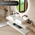 Premium Material: Unser Aufsatzwaschbecken aus massivem Solid Surface Mineralguss besteht aus einer homogenen Mineralwerkstoffmischung. Das Material ist durchgehend massiv, bietet eine harte, kratzresistente Oberfläche und kommt ohne Beschichtungsmaterial aus, das sich abnutzen kann. Solid Surface gilt als die hochwertigste Ausführung von Mineralguss.