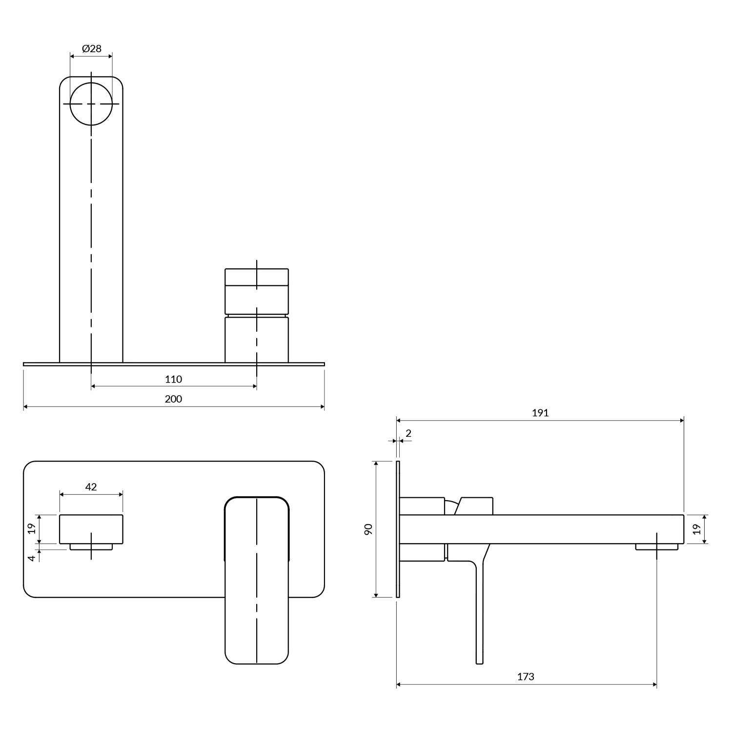 Unterputz-Waschtischarmatur aus Messing "SLIDE" | Einhebel-Waschtischmischer | EcoWater+