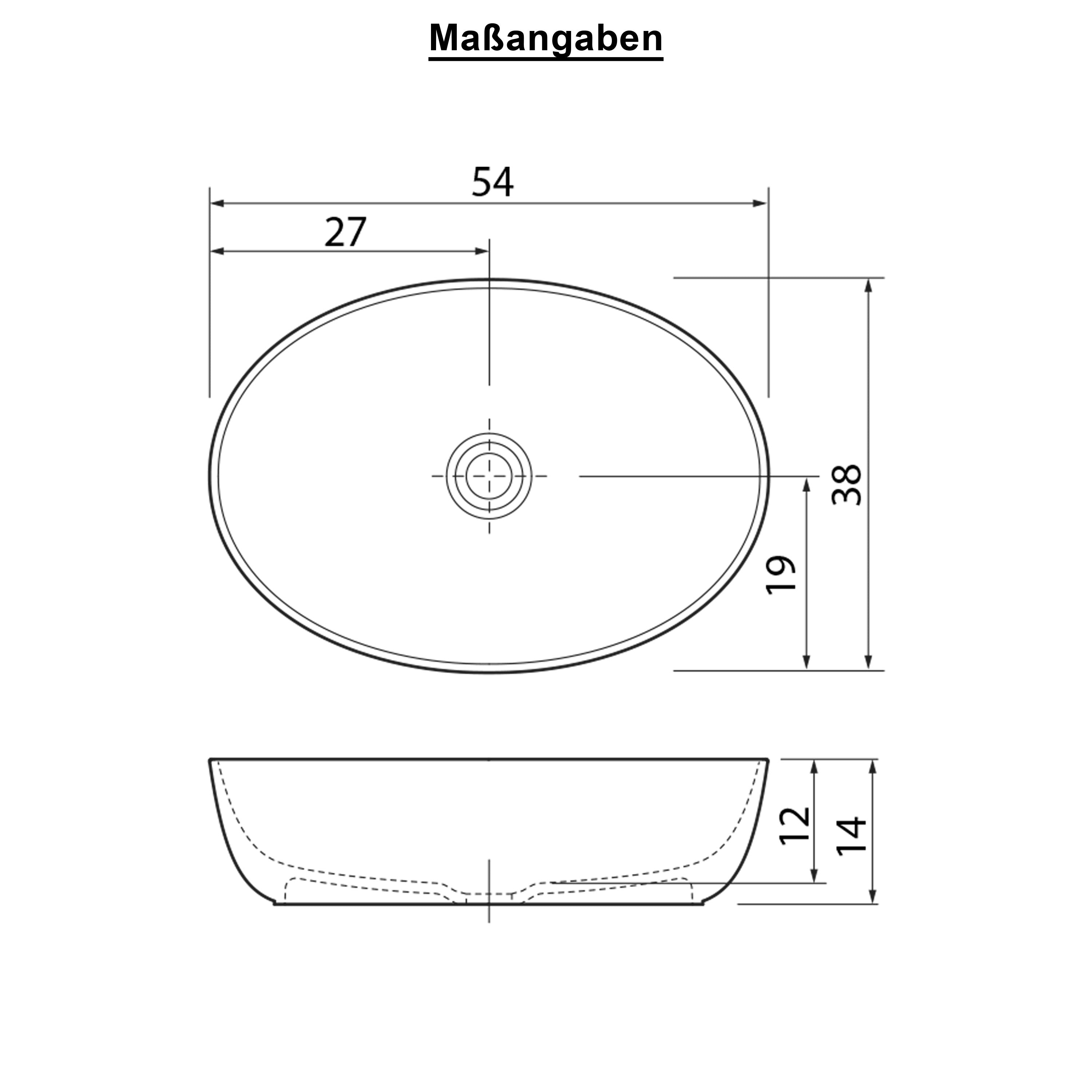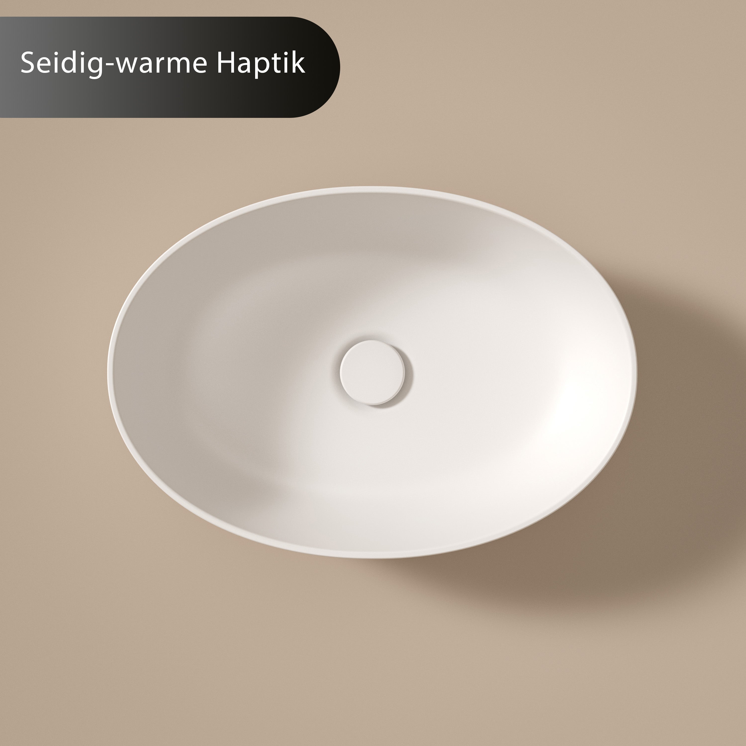 Dolvhin® Aufsatzwaschbecken "Isola" | Xonyx Solid Stone Mineralguss | Elliptisch | Weiß Matt | 54x38x14 cm