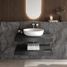 - Leichtgewicht: Trotz seiner massiven Anmutung ist dieses Mineralguss Aufsatzwaschbecken spürbar leichter als klassische Mineralguss-Waschbecken und bietet gleichzeitig eine hohe Stabilität für die sichere Montage.