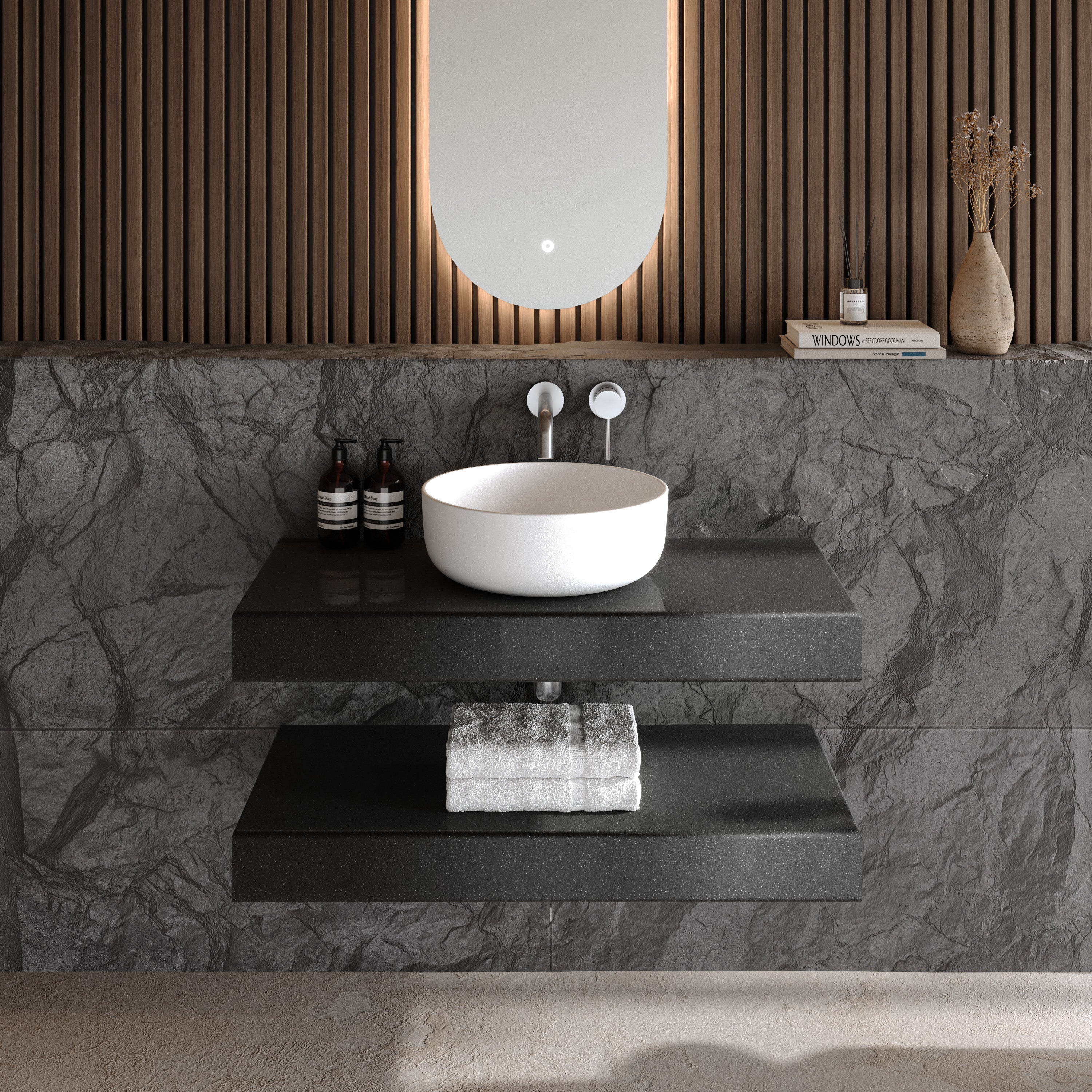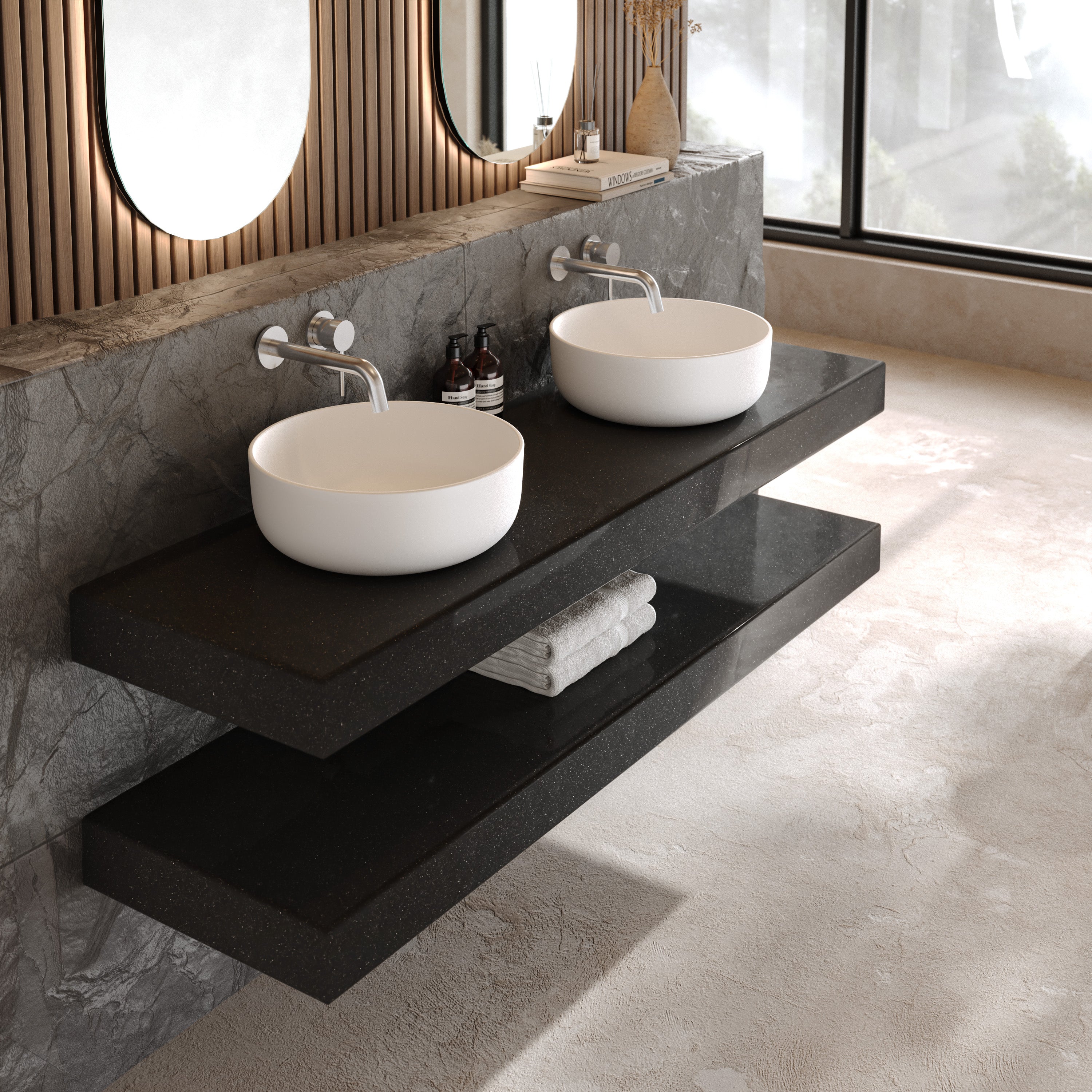 Jedes Aufsatzwaschbecken wird in präziser Handarbeit endgefertigt, um höchste Präzision an jedem Detail sicherzustellen. Nicht porös, kratzresistent und hitzebeständig – das massive Mineralwerkstoff bleibt auch bei täglicher Beanspruchung makellos und formstabil.