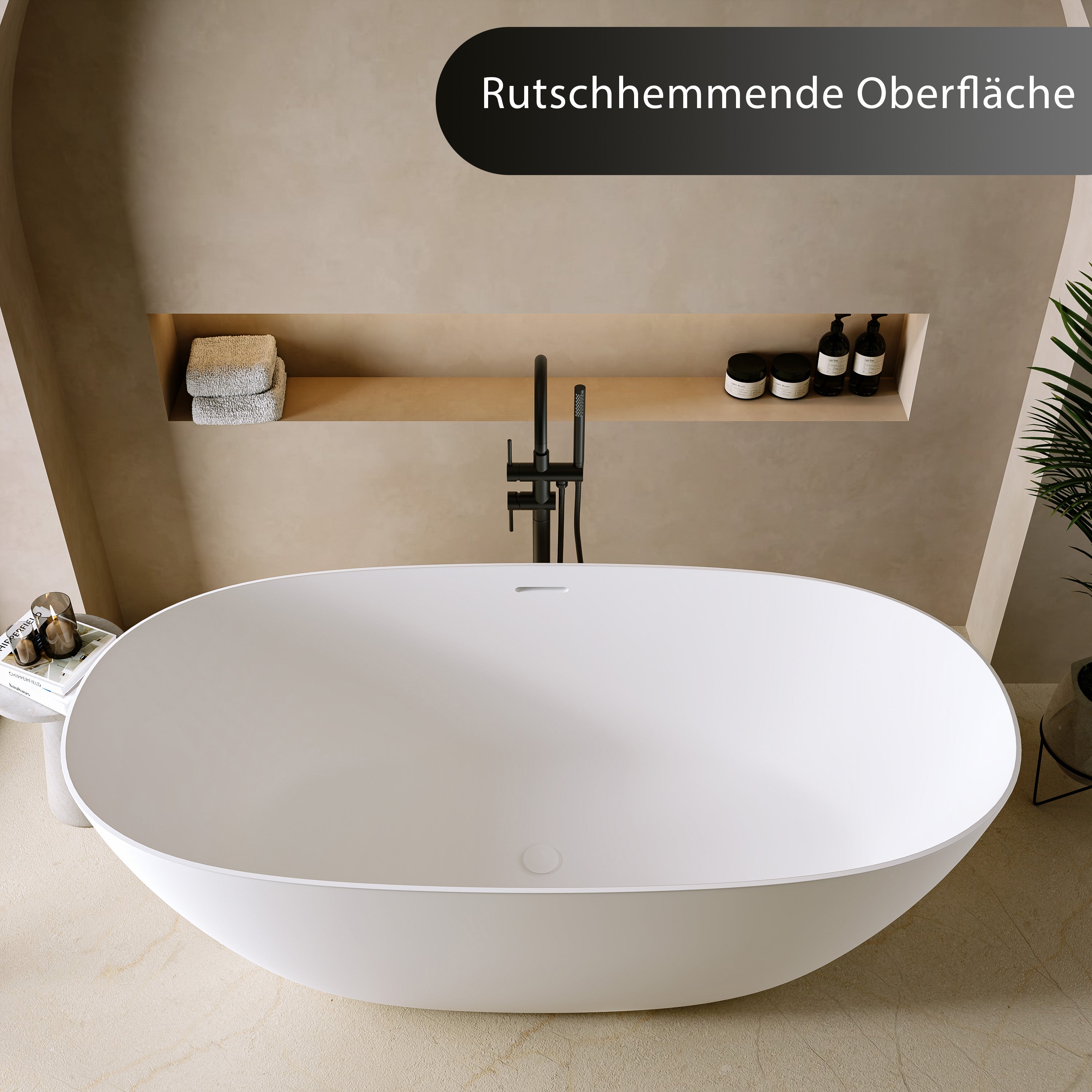 Ist die Oberfläche der freistehenden Badewanne rutschfest oder empfindlich?
