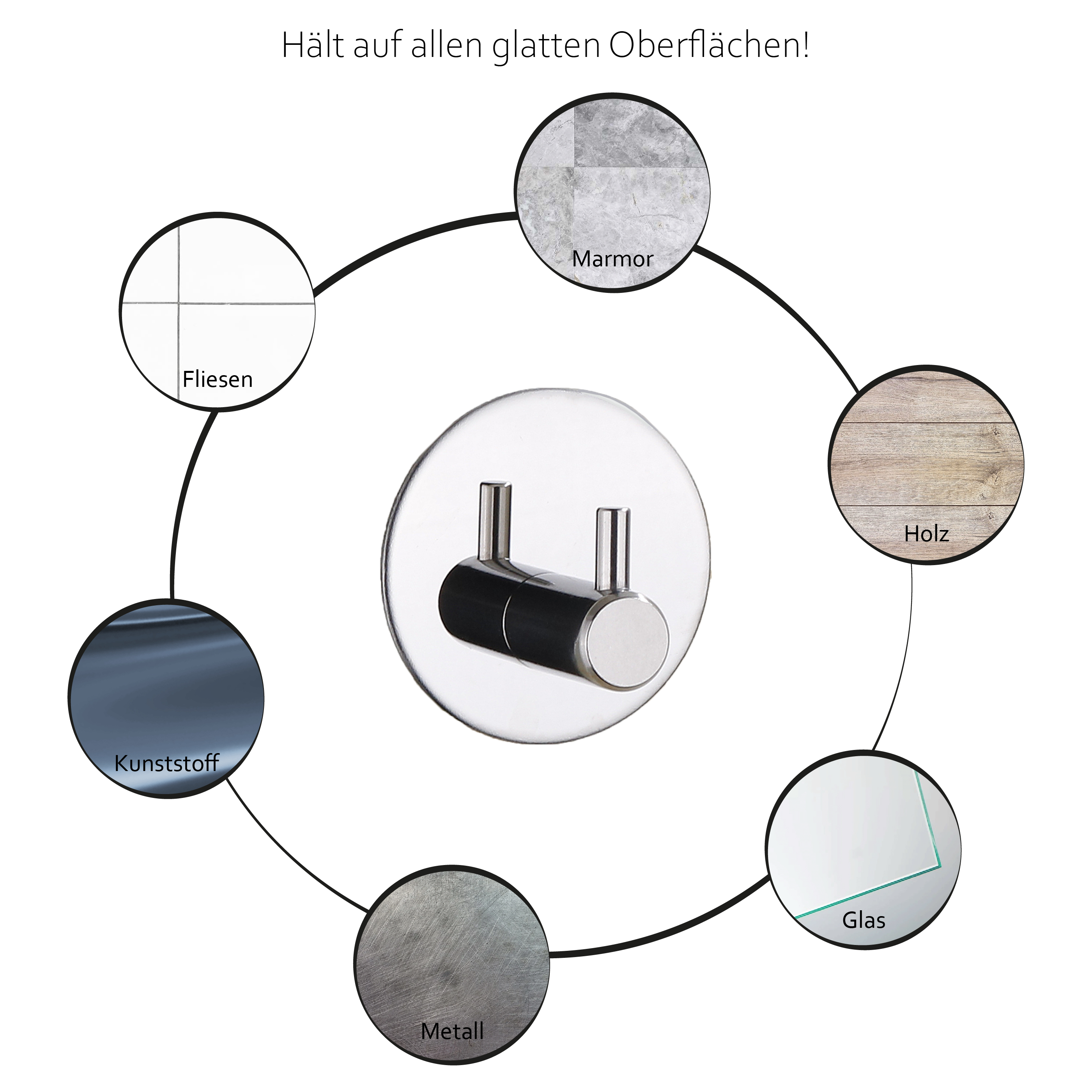Unkompliziert und bohrfrei! Unsere selbstklebenden Handtuchhaken halten auf allen glatten Oberflächen bereits nach 24 Stunden extrem fest. Klebeband abziehen, ankleben, fertig!