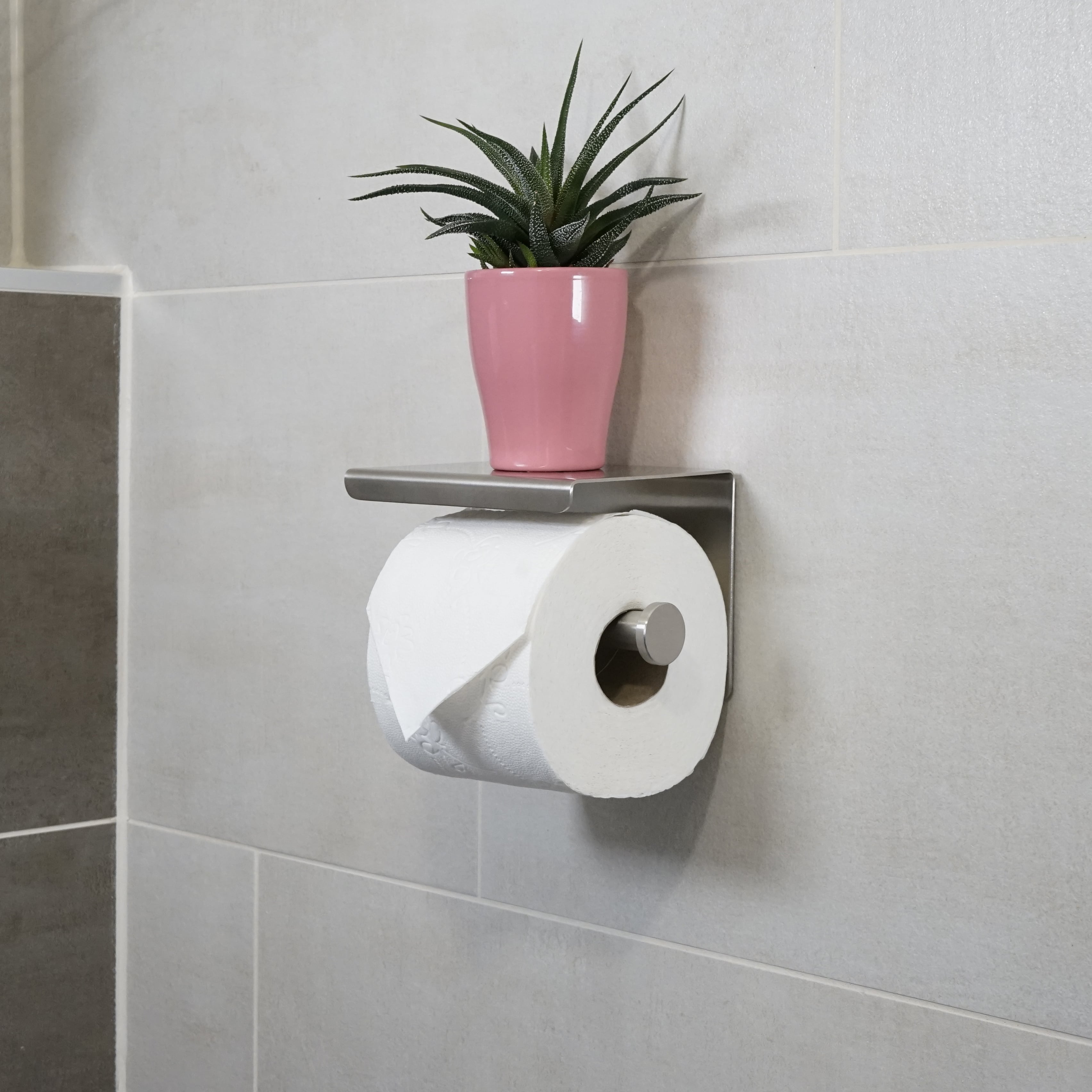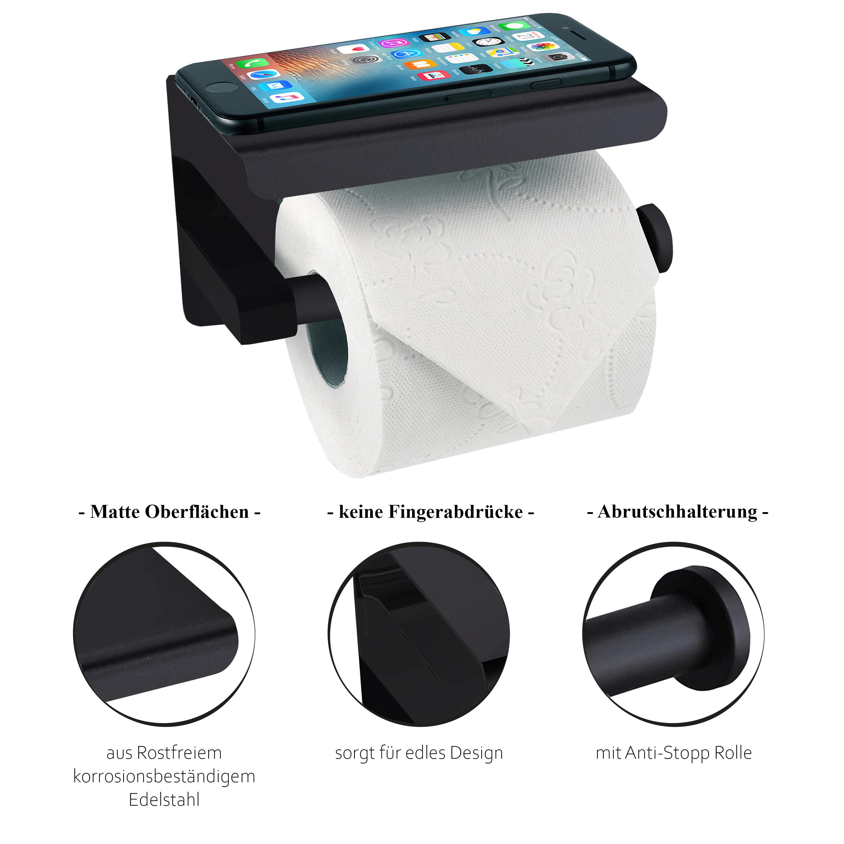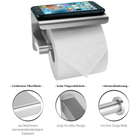 Der Klopapierhalter verfügt über eine praktische Ablage, auf der kleine Gegenstände wie Smartphone oder Feuchttücher aufbewahrt werden können. Die Klebehaken bestehen aus hochwertigem Edelstahl und sind robust und langlebig.